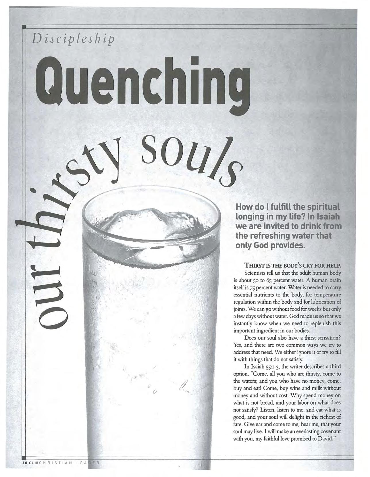What do 1 do to satisfy the longing in my soul? Isaiah invites us to drink from refreshing water that only God provides.