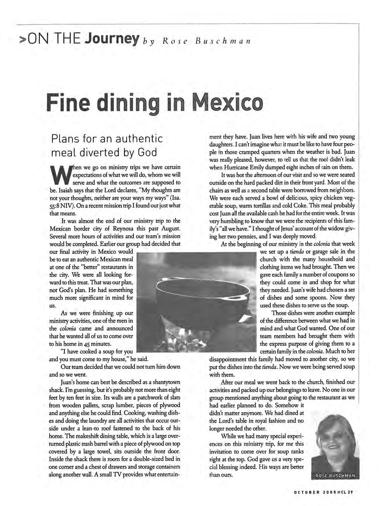 Thanks Mr. Hein and mission director Randy Friesen for reminding the folks that we have people "out there" where challenges exist and where even using a person's full name in a publication is risky.