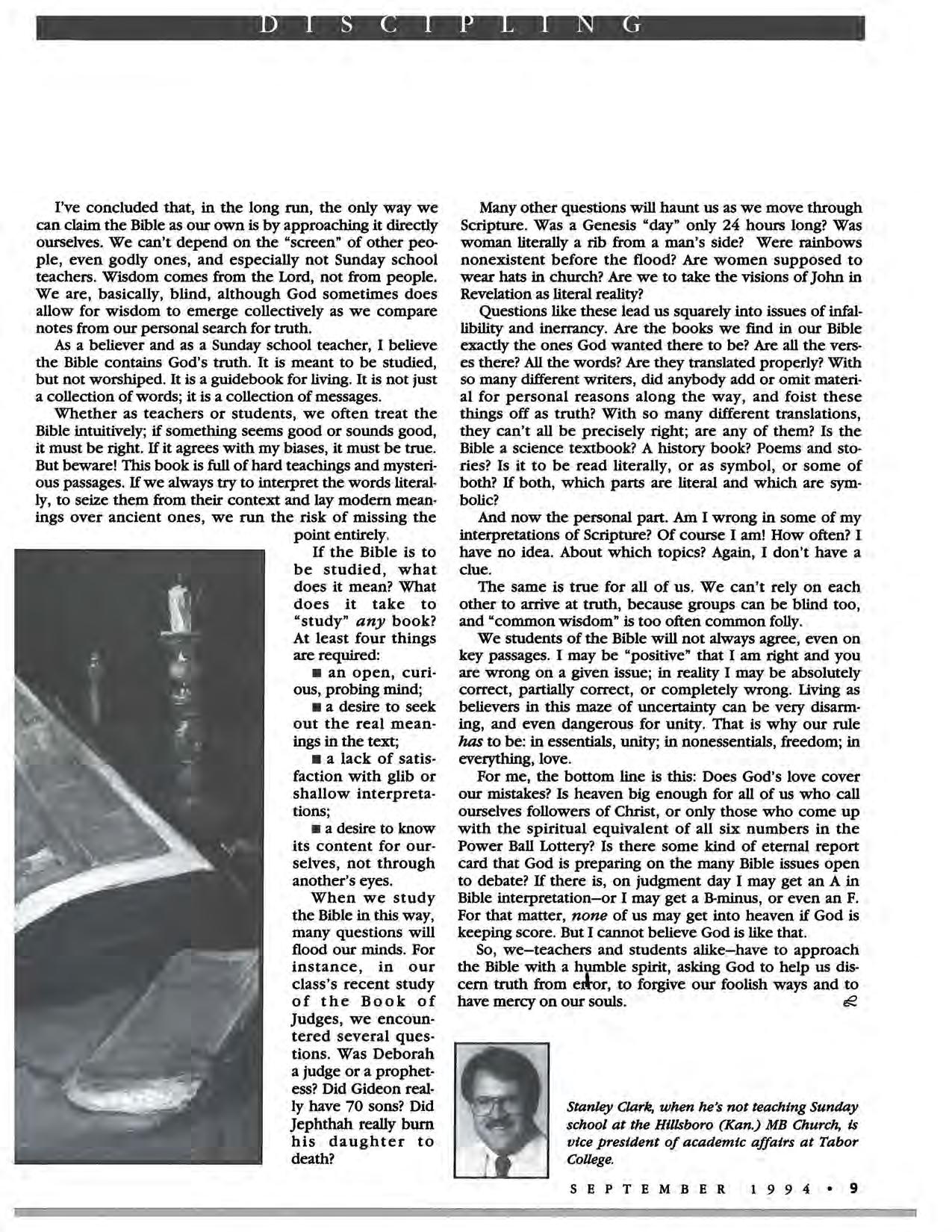 Stanley Clark follows that with some thoughts about the responsibility that comes with the assignment to teach God's truth. If his questions haven't occurred to you yet, maybe they should.