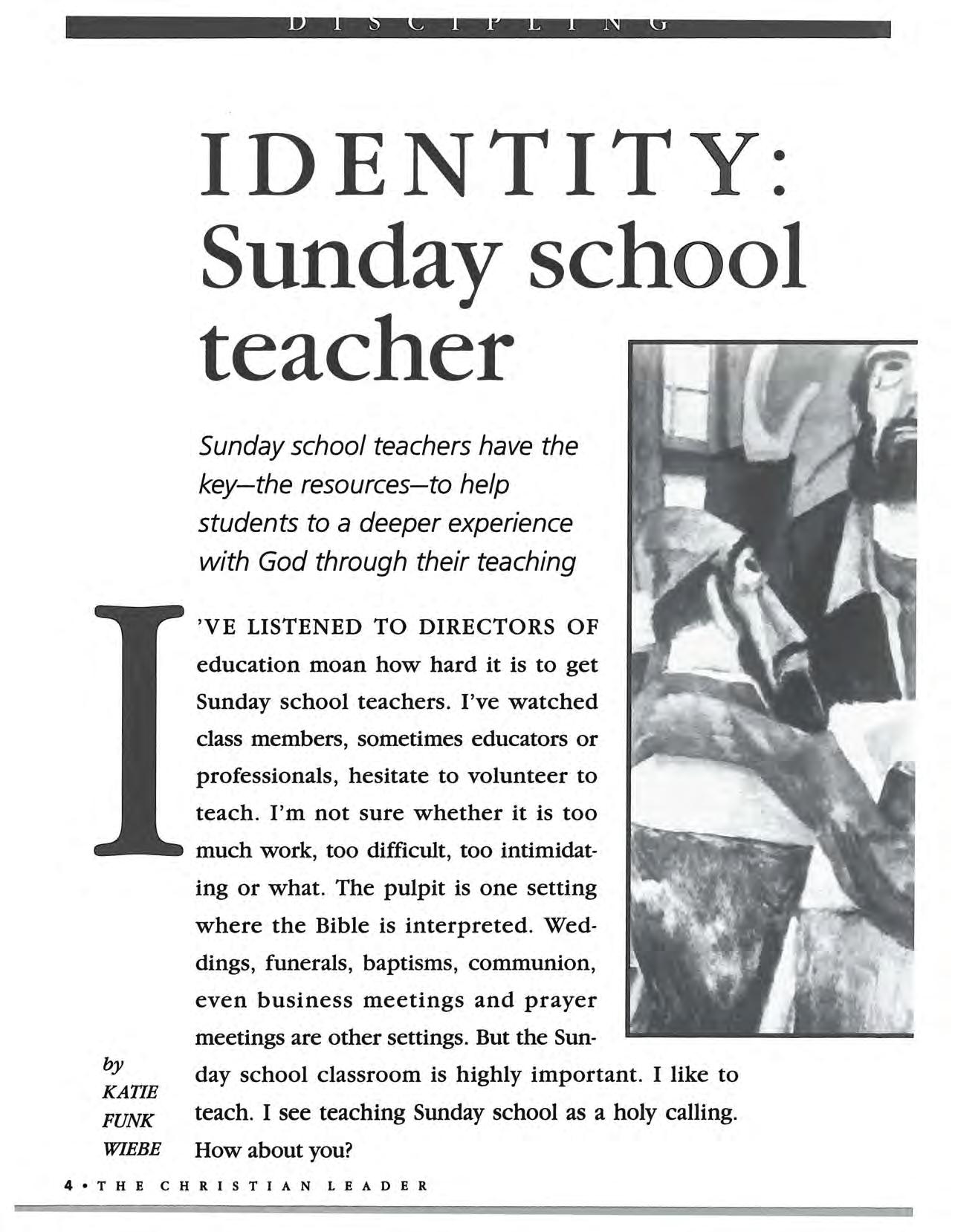 4 Identity: Sunday scho ol teacher