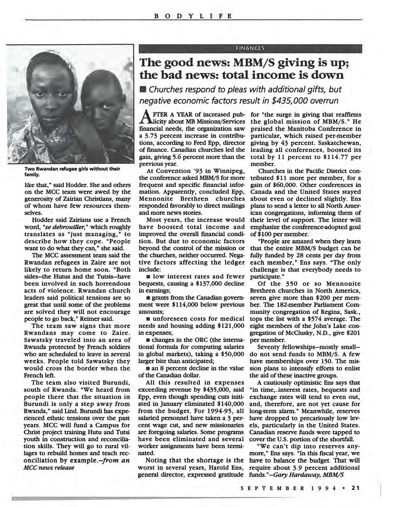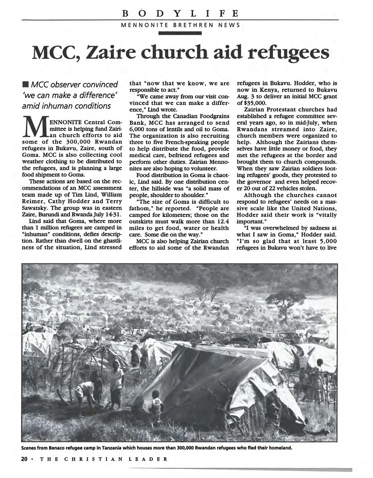 • Help for Rwandan refugees 20