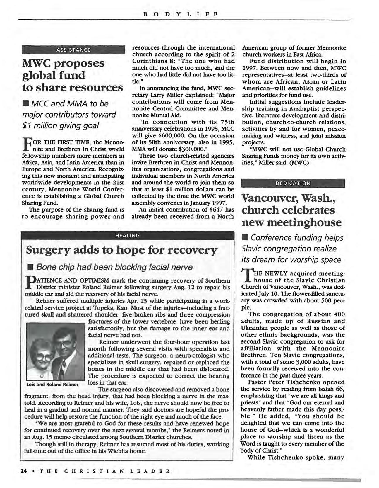 COMMUNICATION: All correspondence should be addressed to The Christian Leader, Box V, Hillsboro, KS 67063. Phone : (316) 947-5543. Fax: (316) 9473266.