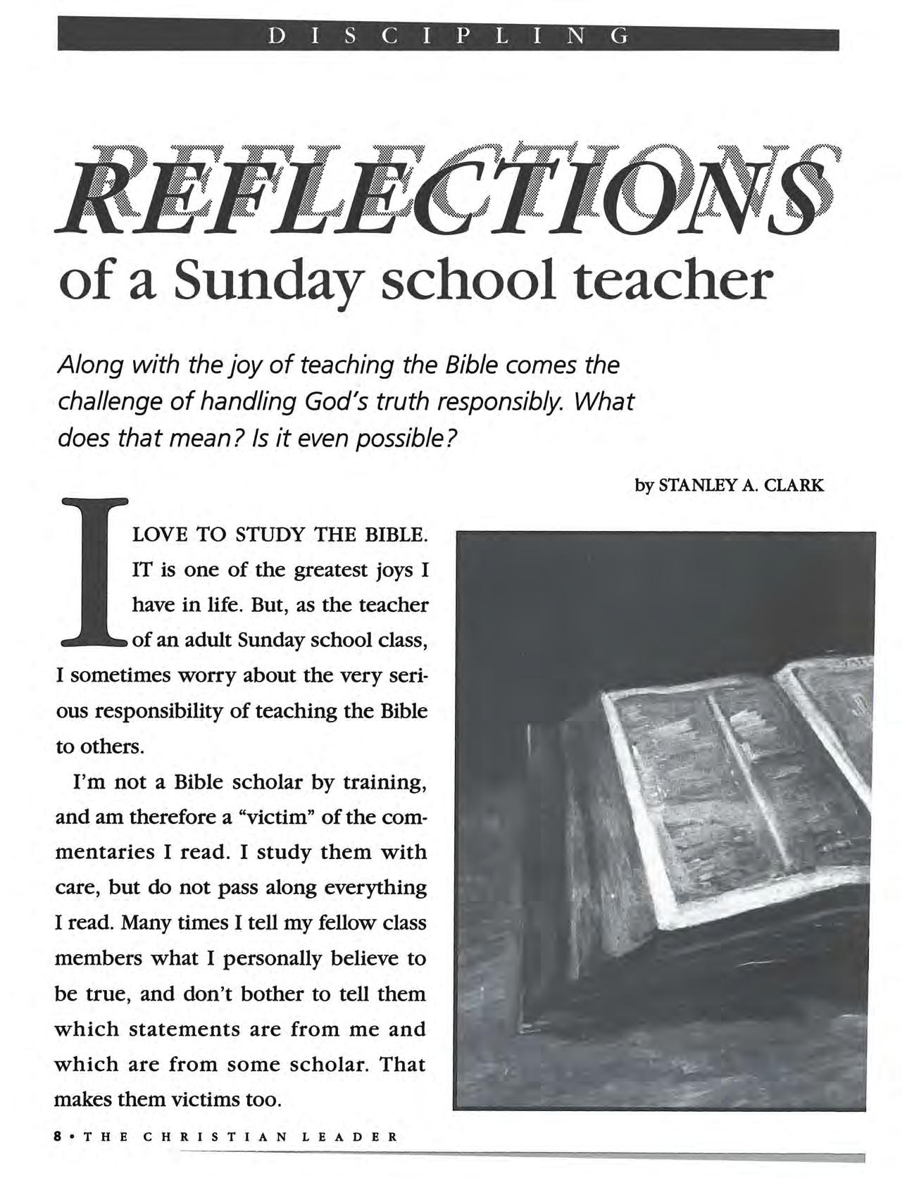 8 Reflections of a Sunday scho ol teacher