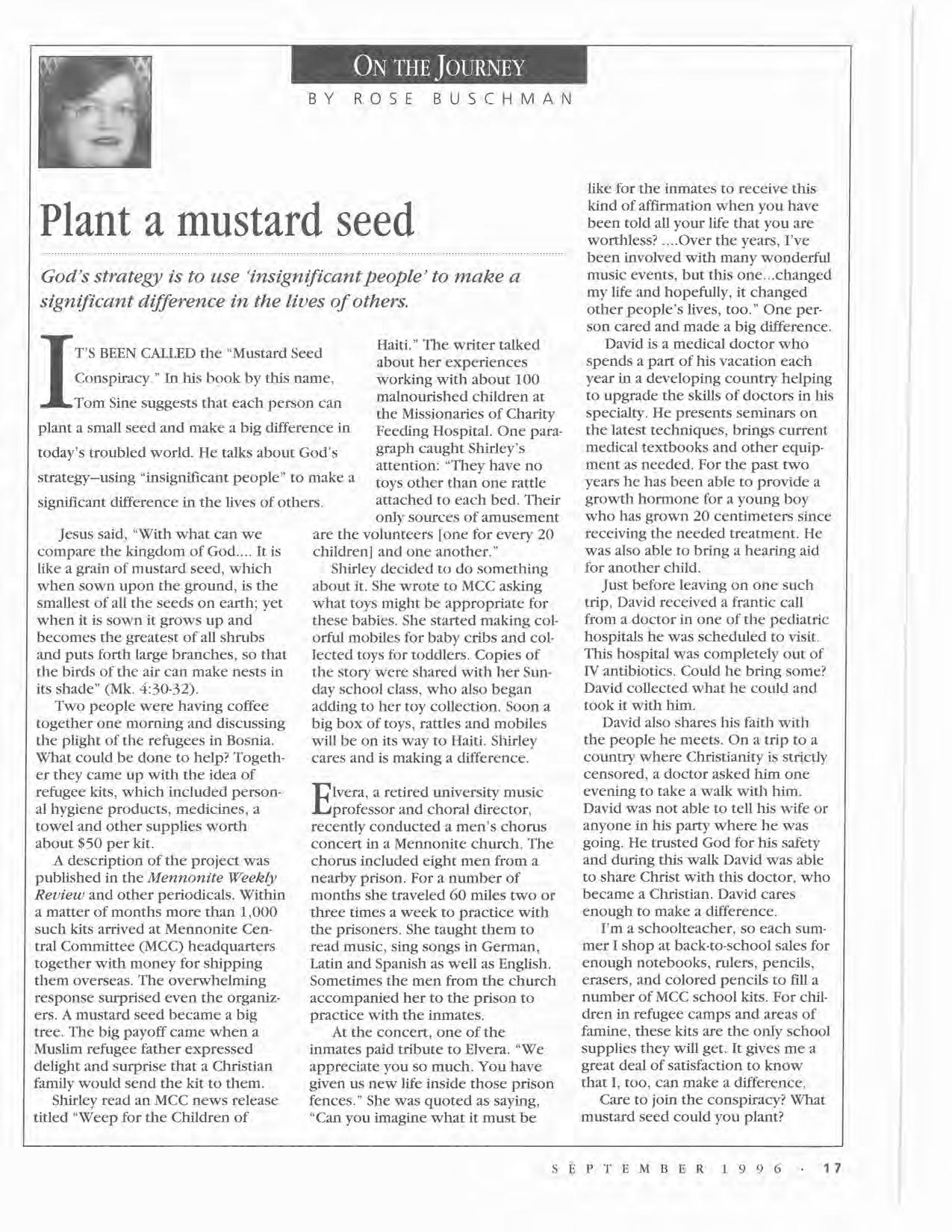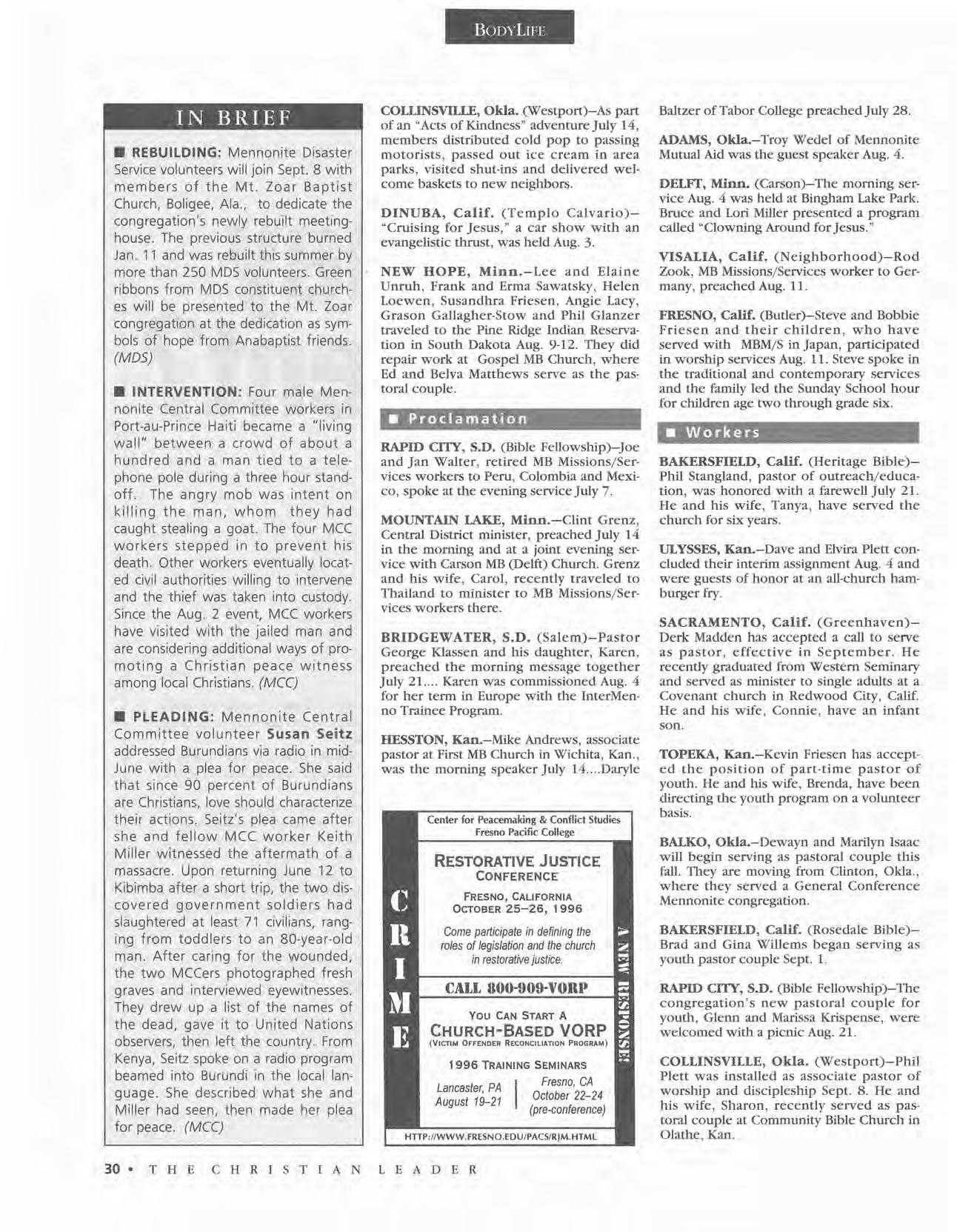 PRINTING: The Christian Leader is printed on recyclable paper by Mennonite Press, Newton, Kansas.