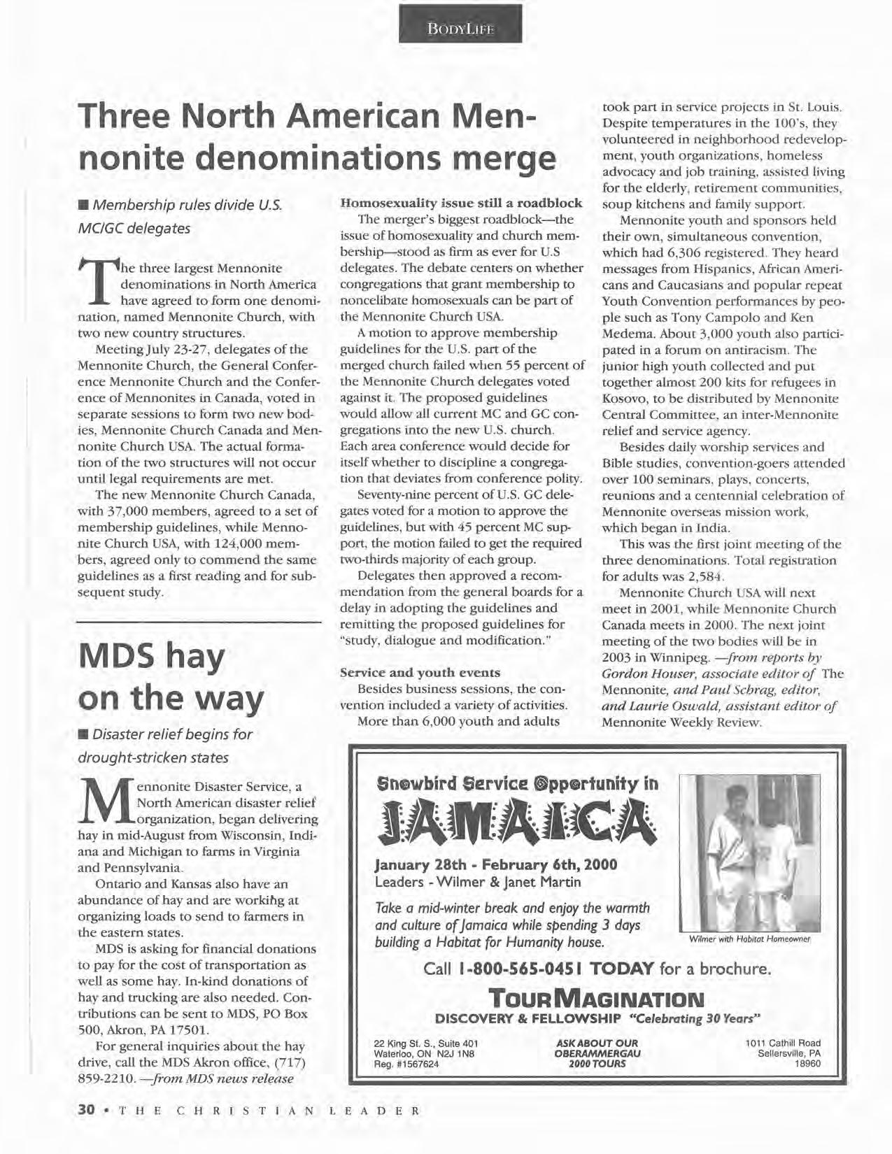 Postmaster: Send Form 3579 to the Christian Leader, Box V, Hillsboro, KS 67063. Periodicals postage paid at Hillsboro, Kansas.