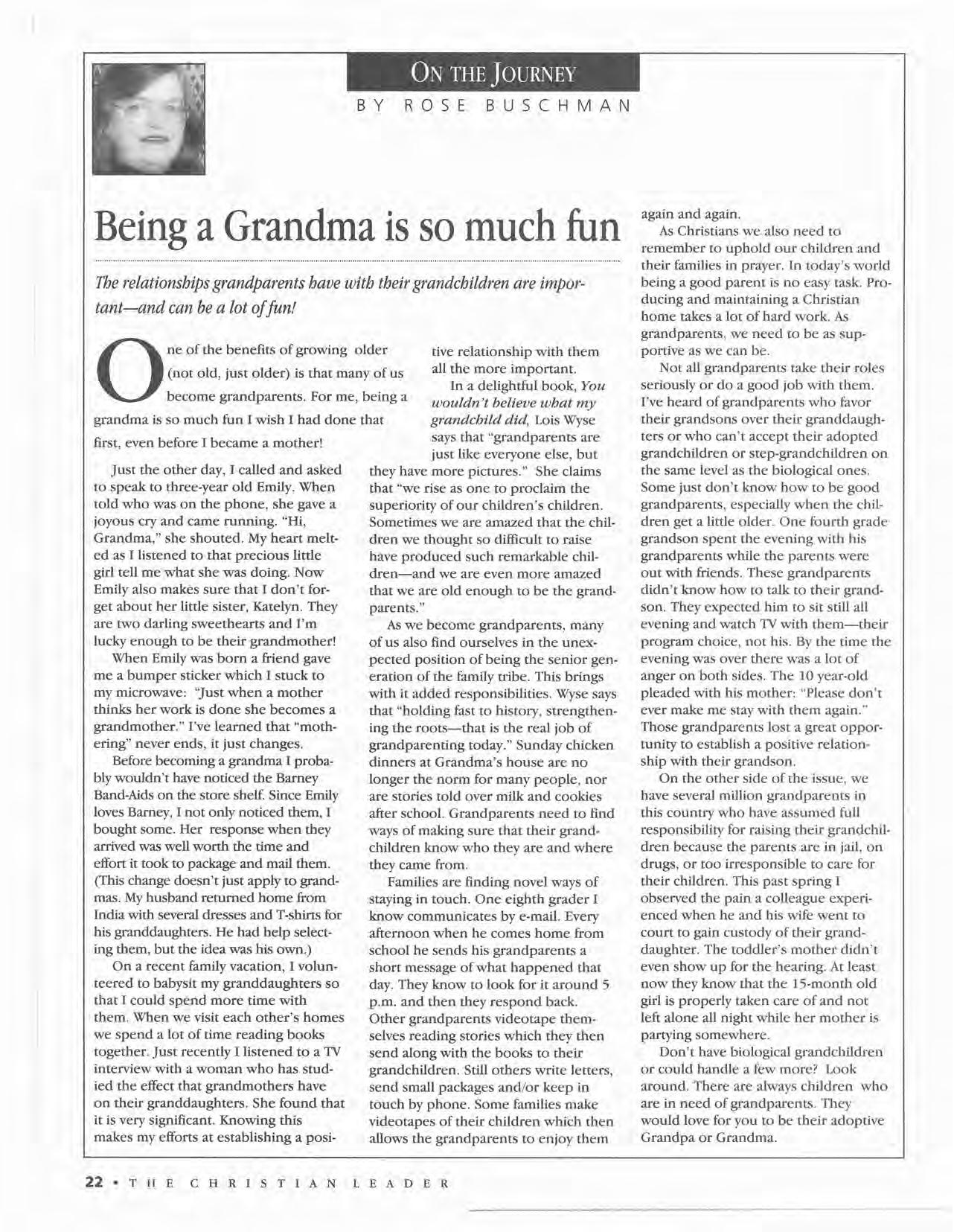 The later part of life, like the first, has unique hurdles and challenges. Katie Funk Wiebe challenges us to examine how the church responds to the needs of older adults, who often are a wealth of experience and wisdom. David Reimer examines the challenges and issues facing those who have lost a spouse and are considering remarrying.