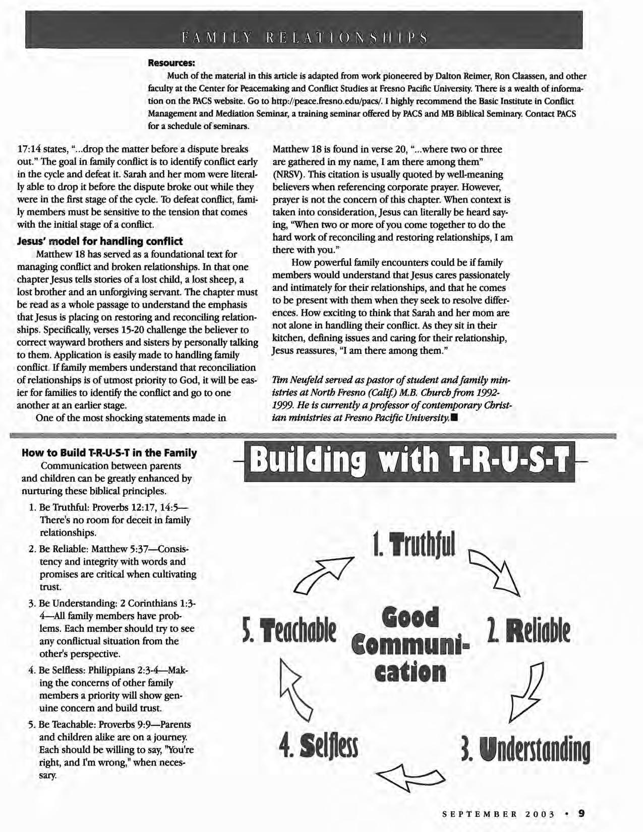 How to Build T·R·U·S·T in the Family Communication between parents and children can be gready enhanced by nurturing these biblical principles.