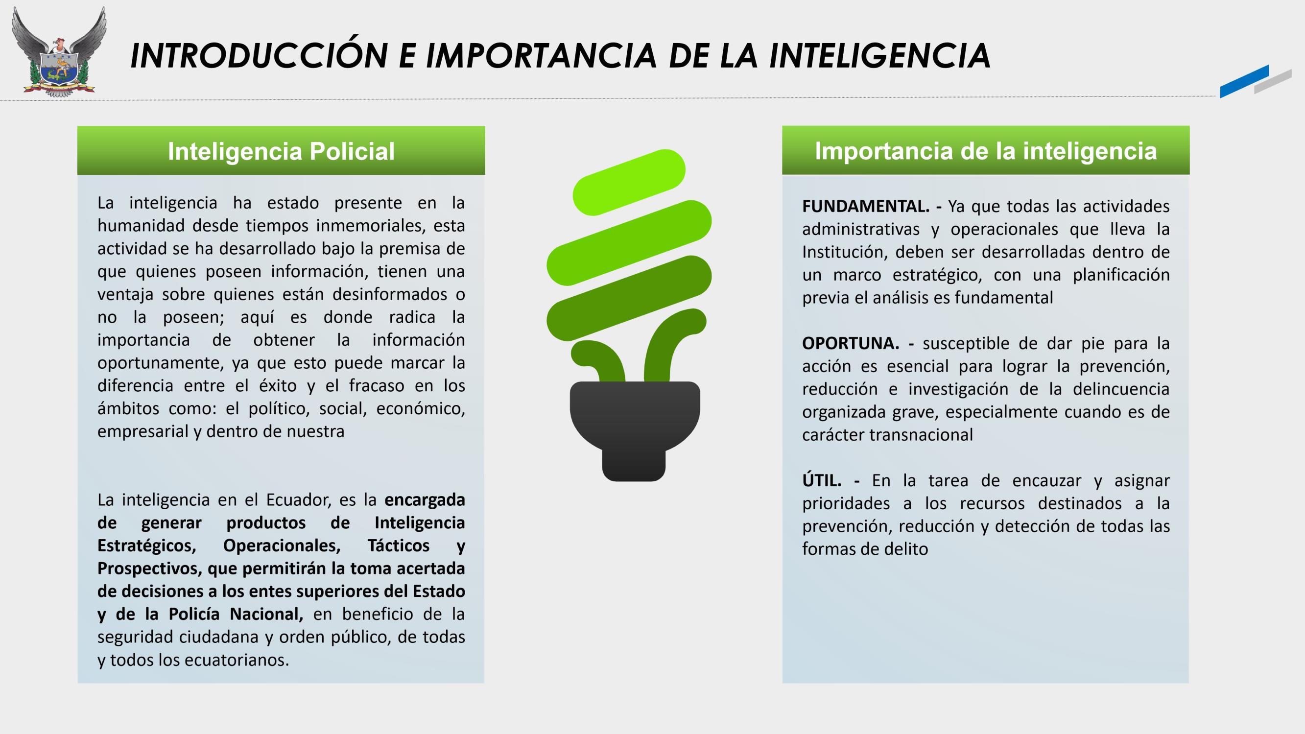 Requerida para el planeamiento y dirección de las operaciones policiales, será aplicada en el campo de acción en apoyo a la inteligencia táctica, estratégica tomando en cuenta la inteligencia prospectiva.