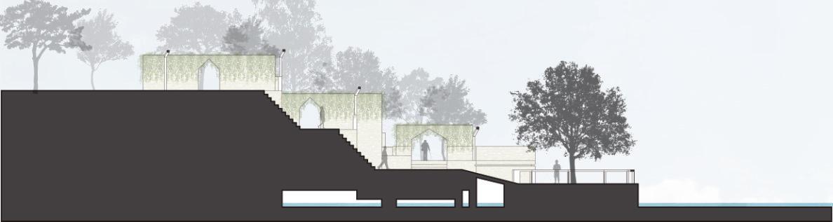 I designed the site for all four buildings in Rhino, allowing each of my three group mates to design their buildings in a consistent manner. I rendered using Enscape,as the base image, and finalized my designs with Photoshop.
