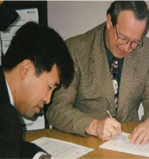 이 시작되었습니다. 1997년 11월, 기독교대 학설립동역자회를 전신으로 하는 기독학술 교육동역회(Disciples with Evangelical Worldview, DEW)에서 양승훈 교수님 가 정을 캐나다에 파송했고, 1년 후 양교수님이 ACTS 신학대학원과 협약을 맺으며 VIEW 가 설립되었습니다. 이 사진이 1998년 11월 3 일 협약을 맺던 장면입니다.