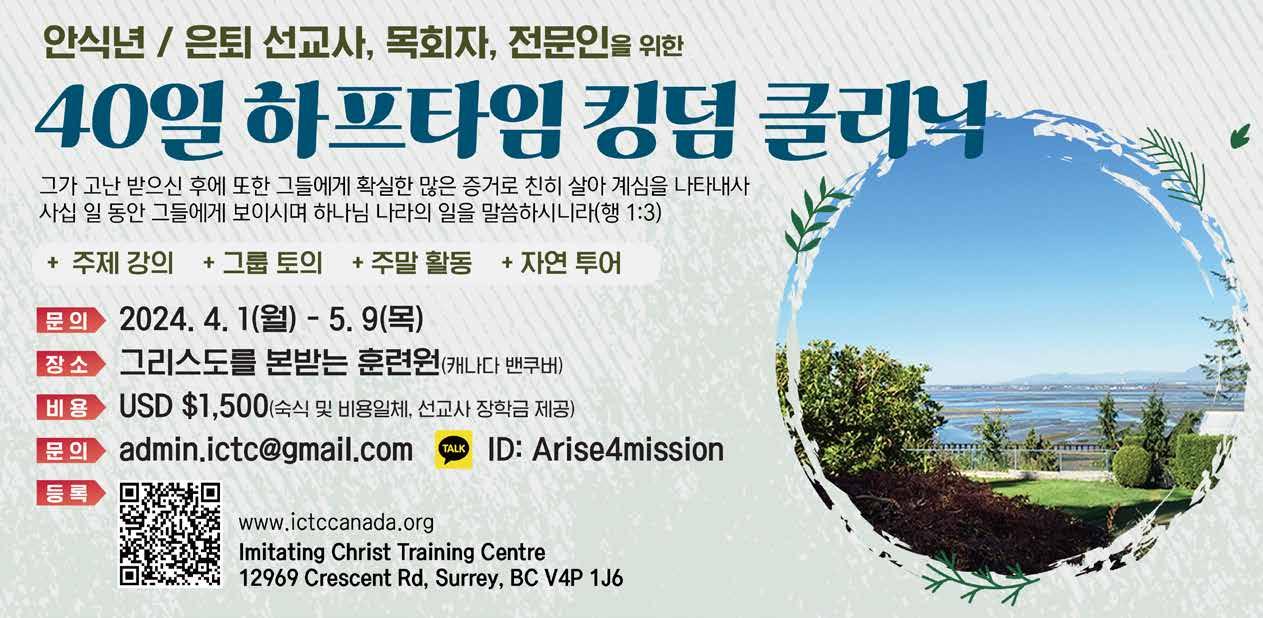 2024년 6월 24일(월)-26일(수), 소망수양관( 곤지암) 회비 25만원(선등록 20% 할인), 문 의 010-9531-1962