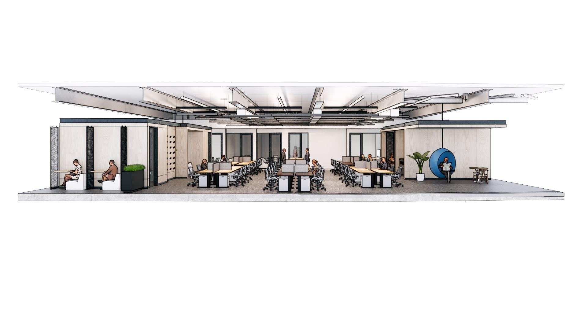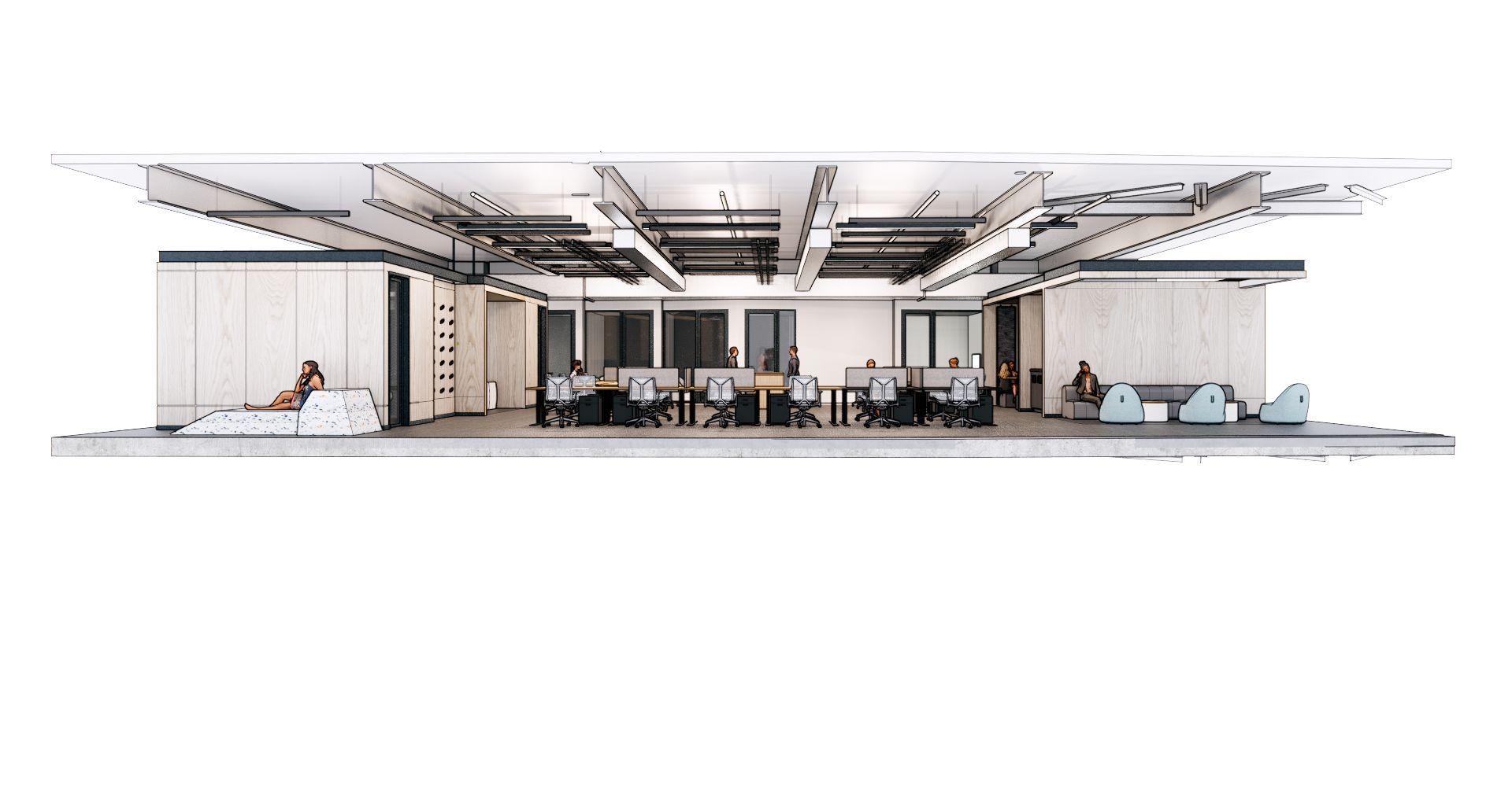 Drawing inspiration from the innovative spaces of the tech and consulting industries, theAustin office embodies a team-oriented and adaptable work environment.The design prioritizes collaboration, flexibility, and a connection to the local landscape.