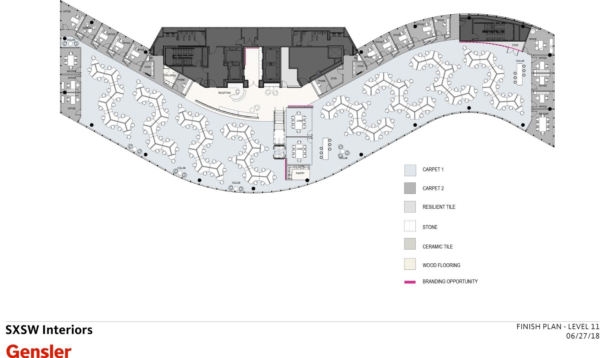 Closed offices are strategically placed along the perimeter of each floor, lining every wall except the South facing wall. To the South, from nearly every angle, floor-to-ceiling windows frame a postcard view of the Capitol dome, tying the iconicAustin landmark with the quintessentialAustin festival.”