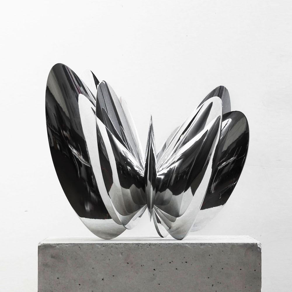 Mooney’s sculptures are made with wood, glass, highly polished, marine-grade stainless steel, aluminum painted with bright colors, or Corten steel. The shapes may share the same characteristics, but the warm, rough opacity of a weathered Corten surface makes for an entirely different viewing experience when presented in a reflective, high-polish finish of 316L steel, or through the light transparency of glass. Mooney was born and raised in Dublin, Ireland, receiving his BFA from the National College of Art. He relocated to New York City in 1994 and has since enjoyed a successful artistic career with many exhibitions and commissions in the U.S. and abroad. Some public installations and collections include the American Consulate in Guadalajara, Mexico; the Brooklyn and Chicago Botanic Gardens; The Speed Art Museum, Louisville, Kentucky; the Taikang Wuyuan Art Museum in Shanghai and the Namhai Arts Center in Guangdong, China.