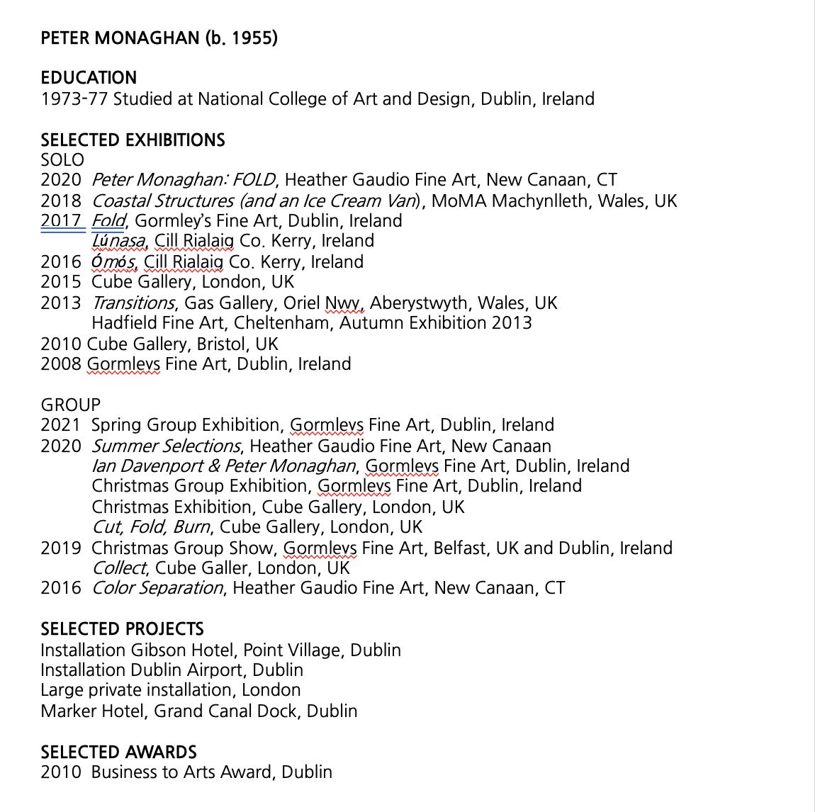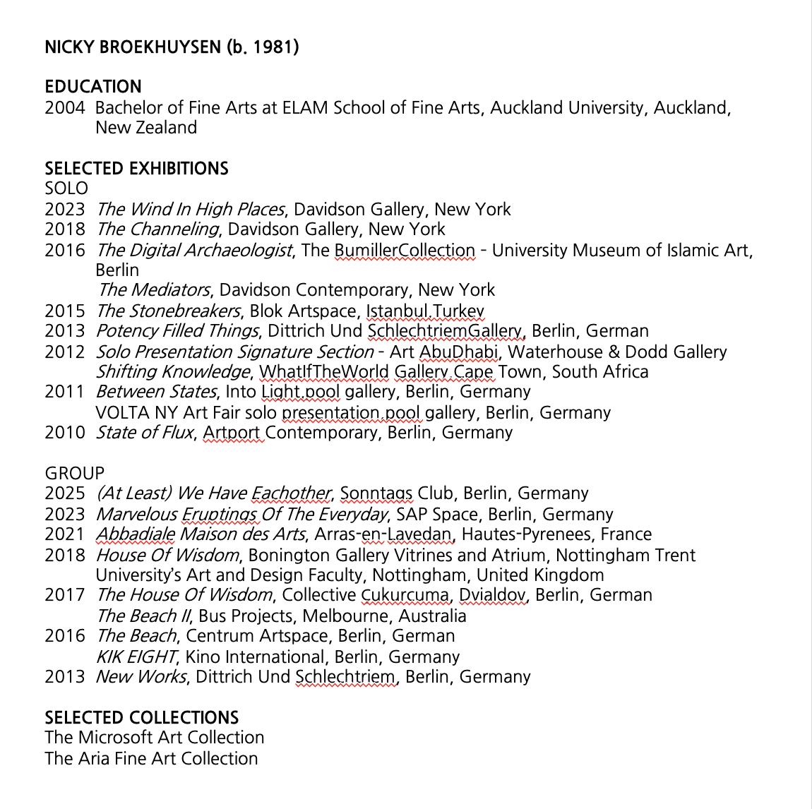 Artists’ CVs (Abridged)