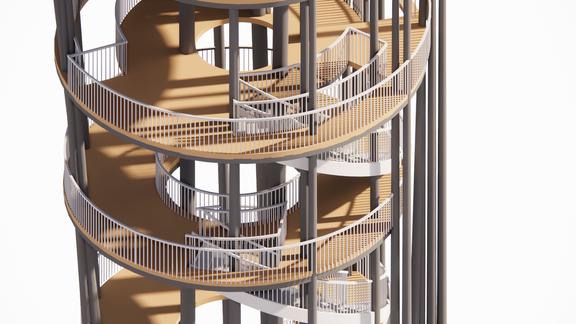 Thecentraltowerofthebuildingbuiltalmostentirelyofba wholebuildingstructureissupportedbythecentraltower,w smallerinnertower.Theinnertoweristhesecrettoitsmaje whichis6floorlevels. Thedesignwasinspiredbythepetals flower.Thestaircasescirclearoundthecentraltowertothe Thereisaconcretebaselocatedonthemiddleofthetower, themiddlecolumnsoftheinnertowertosupportit.