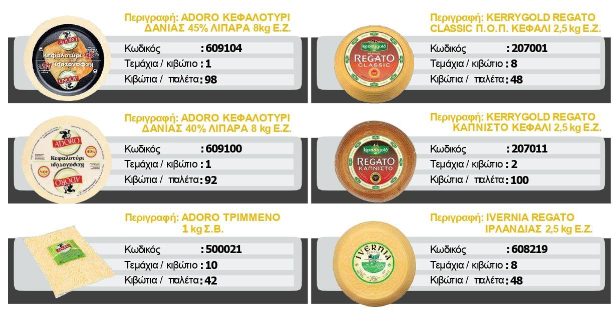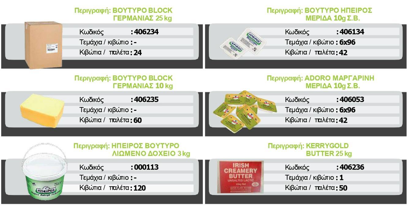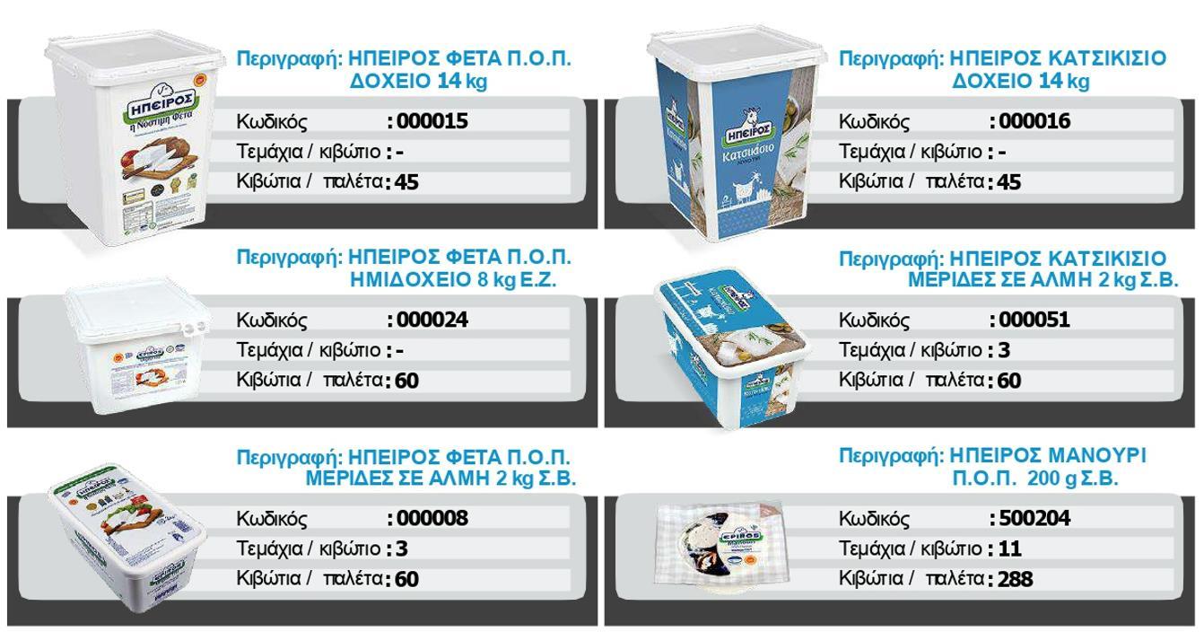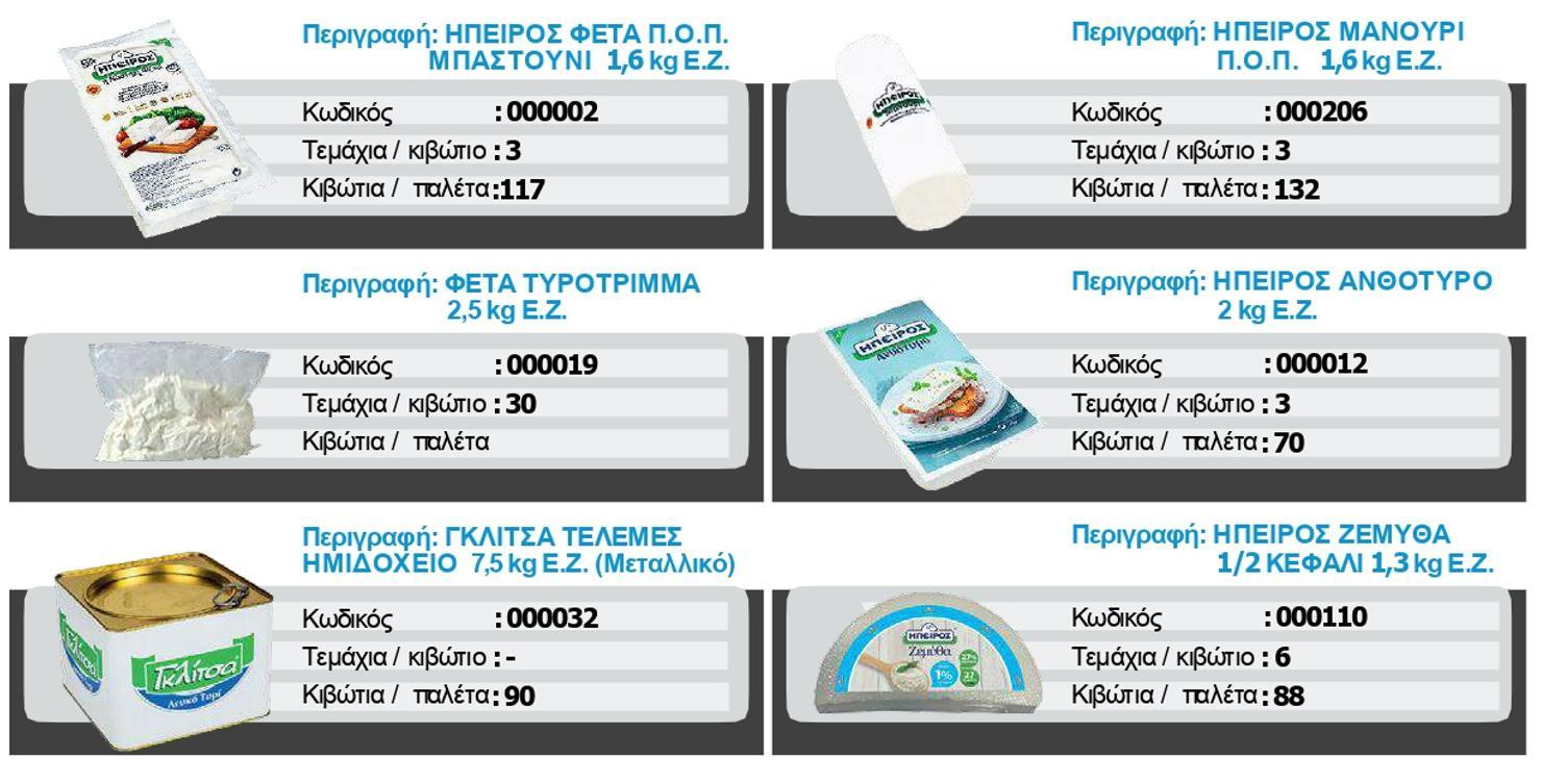 170 ΚΩΔΙΚΟΣ ΕΙΔΟΥΣ ΠΕΡΙΓΡΑΦΗ ΕΙΔΟΥΣ ΣΥΣΚΕΥΑΣΙΑ 0102021213 ΓΥΡΟΣ ΧΟΙΡΙΝΟΣ ΠΡΟΨΗΜΕΝΟΣ PFS 2 ΚΙΛΩΝ 1800030055 ΓΥΡΟΣ ΚΟΤΟΠΟΥΛΟ ΠΡΟΨΗΜΕΝΟΣ PFS 2 ΚΙΛΩΝ 02-0442 ΒΙΚΡΕ ΓΥΡΟΣ ΚΟΤΟΠΟΥΛΟ ΠΡΟΨΗΜΕΝΟΣ ΚΤΨ 4Χ1Kg 02-0441 ΒΙΚΡΕ ΓΥΡΟΣ ΧΟΙΡΙΝΟΣ ΠΡΟΨΗΜΕΝΟΣ ΚΤΨ 4Χ1Kg 02-0500 ΒΙΚΡΕ ΓΥΡΟΣ ΧΟΙΡΙΝΟΣ ΠΡΟΨΗΜΕΝΟΣ ΚΤΨ 12X330GR