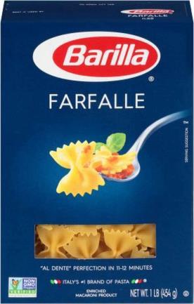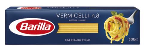 ΚΩΔΙΚΟΣ ΠΕΡΙΓΡΑΦΗ ΣΥΣΚΕΥΑΣΙΑ 3112101487 ΜΑΚΑΡΟΝΙΑ BARILLA VERMICELLI ΝΟ8 35x500g 112100962 ΜΑΚΑΡΟΝΙΑ BARILLA VERMICELLINI ΝΟ7 35x500g 3112100963 ΜΑΚΑΡΟΝΙΑ BARILLA SPAGHETTI Νo5 35x500g 3112102253 ΜΑΚΑΡΟΝΙΑ BARILLA RIGATONI Νo89 30x500g 865010 ΜΑΚΑΡΟΝΙΑ BARILLA BAVETTE Νο13 18Χ1 kg 1103020500 ΜΑΚΑΡΟΝΙΑ BARILLA BUCATINI Νo9 24x500g 1103020501 ΜΑΚΑΡΟΝΙΑ BARILLA FARFALE Νo265 30x500g 1103021222 ΜΑΚΑΡΟΝΙΑ BARILLA FUSILLI 30x500g