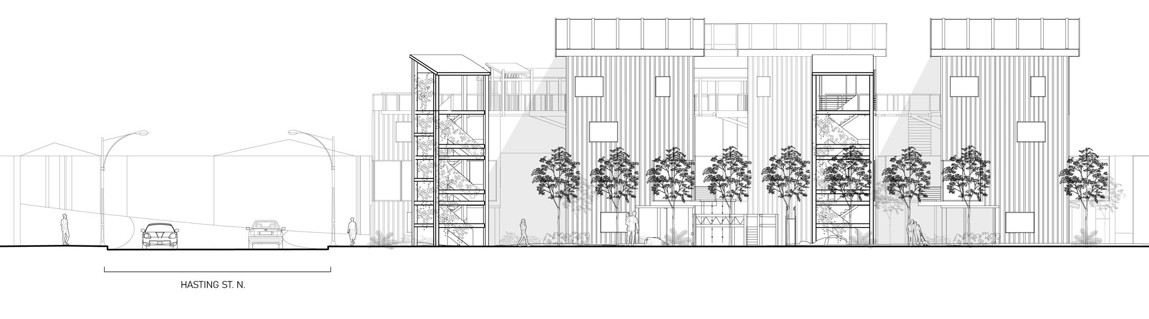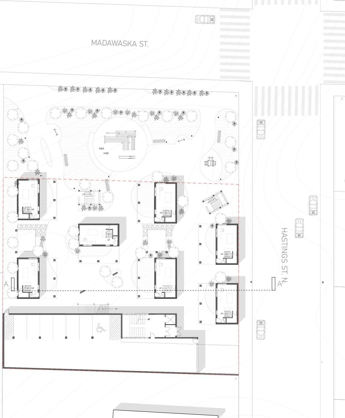 Located on 116 Hastings St N, Bancroft. Hasting Park Towers tackles the idea of connecting communities by bringing nature within the ground floor of the project. Using a proposed park north of the site, the intent is to spread the park within the site, providing natural views and user interactions.