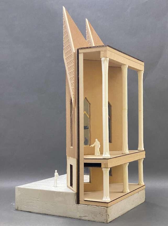 previous model, we built a 1:75 Sectional model that displays interior and exterior conditions of the Nave. Showcasing the precast cardboard, The walls were created by using laser cutting, and the ceiling was fabricated by 3D printing.