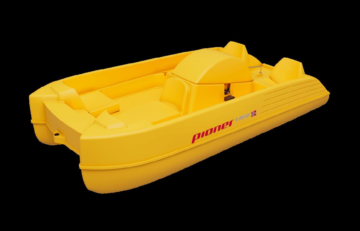 Trio er et morsomt og annerledes båtalternativ som samler familien til felles aktiviteter. Trio har en moderne og pen finish og er praktisk med fem seter. To av setene kan legges ned og gjøres om til en solseng, og du kan få ettermontert badetrapp. Pioner Trio er selvdrenerende.