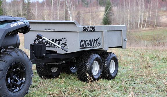 Gigant GW 100 er en enkel ATV dumper tilhenger som passer dine arbeids oppgaver perfekt. Med god vandring av pendel boggi oggod tippvinkel passer denne deg perfekt