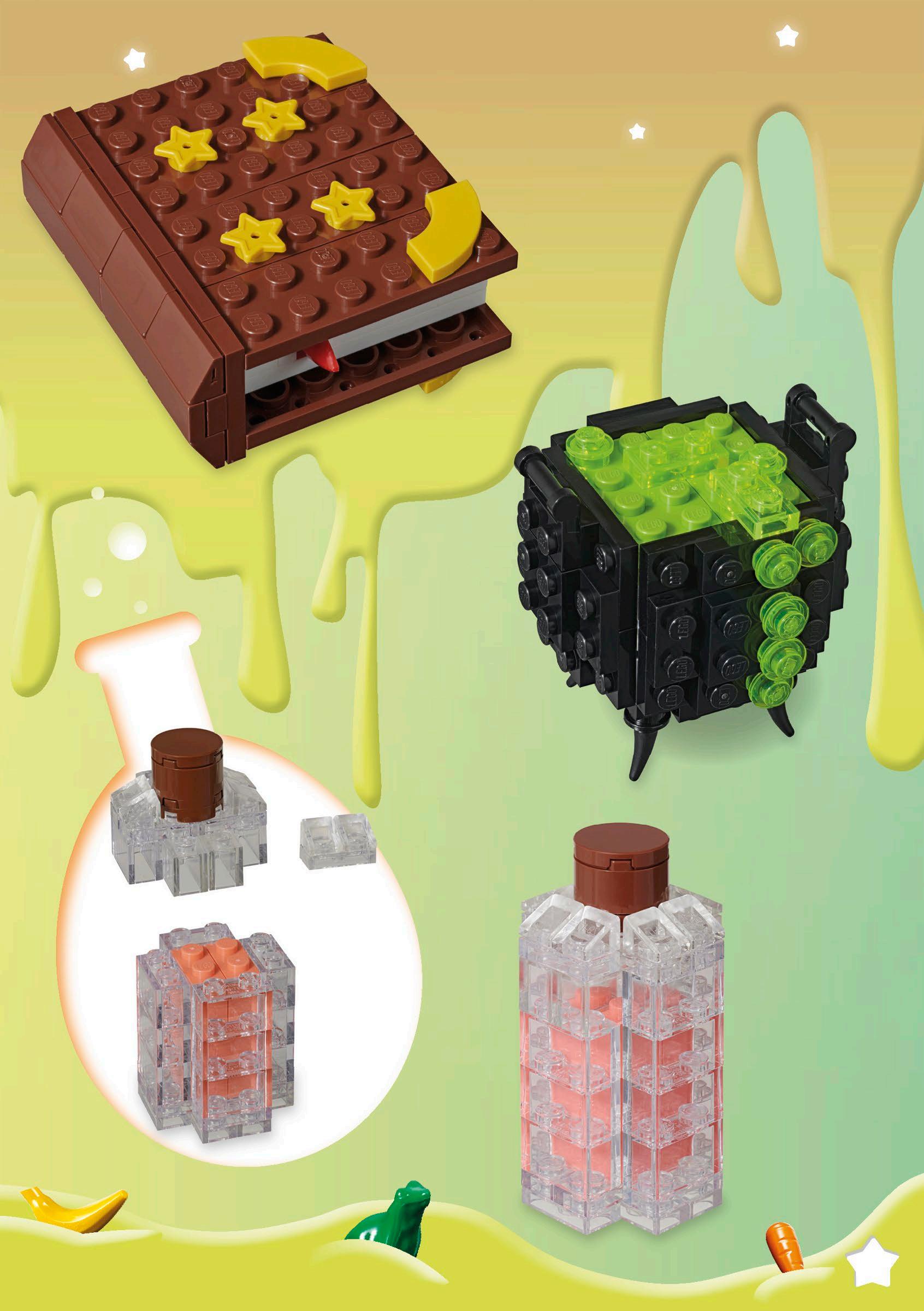 Look for small transparentpiecesinyour collection.Tiny1x1round bricksandslopesareideal forminiaturepotion bottles.