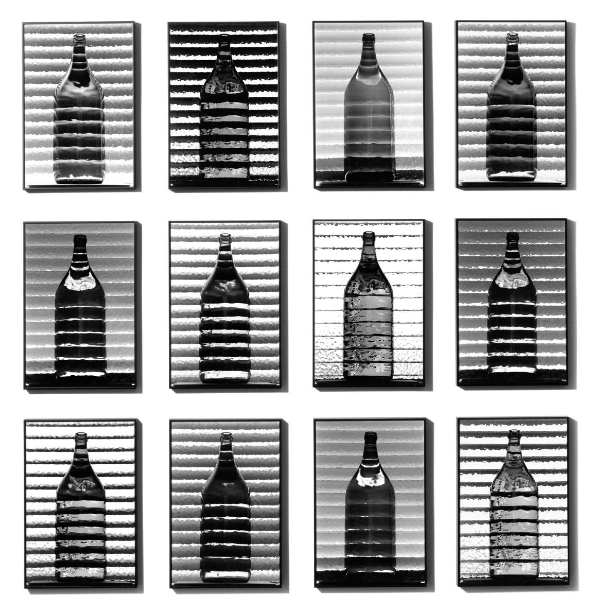 Ein einfacher, vorgefundener Alltagsgegenstand, die Dopplerflasche (Fritz Simak stammt aus dem Weinviertel) wird Objekt der fotografischen Untersuchung. Dabei ändert Simak nicht den Standpunkt und die Perspektive seiner Kamera oder das Objekt an sich, sondern lediglich den Lichteinfall durch die dahinterliegenden Jalousien am Fenster. Durch unterschiedliche Kontrastfilter bei der Vergrößerung entsteht so eine abwechslungsreiche Serie des gleichen Motivs. Simak dringt damit hinter das eigentlich abgebildete Objekt, hinter das Sujet und bildet die Fotografie an sich ab, als wörtlich übersetzte Lichtzeichnung – aus dem altgriechischen Wort φώς (phōs), im Genitiv φωτός (photós) für Licht und γράφειν (graphein) für schreiben, malen, zeichnen, also „zeichnen mit Licht“.