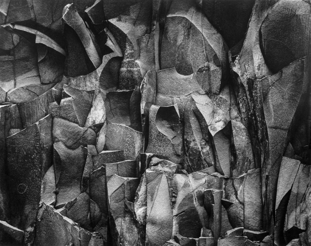 Im Jahr 1959 begegnete Paul Caponigro auf einer Straßenbaustelle in West Hartford, Connecticut, einer Felswand, deren zerklüftete Oberfläche ihn beeindruckte, als wäre sie ein abstraktes Kunstwerk der Natur. „Die Texturen, Formen und die Beleuchtung in diesem Foto lassen vermuten, dass es sich eher um ein Gemälde als um eine fotografische Aufzeichnung der Basaltwand handelt“, schrieb er in seinem Buch Visual Memories and Hidden Places (2023), „und tatsächlich verbinden einige Betrachter das Foto mit dem Gemälde von Marcel Duchamp, das als Nude Descending a Staircase, No. 2 bekannt ist.“ Er fügte hinzu: „Das Gemälde und mein Foto zeigen sehr ähnliche Formen und Gestalten, aber natürlich schaue ich lieber mein eigenes Foto an, um das Wunderbare und Verspielte zu beobachten, das in den launischen Wegen der Natur zu finden ist.“