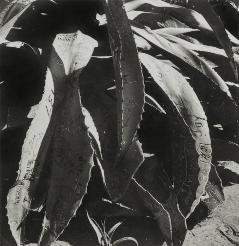 (Ich neige zur Faszination und zur visuellen Kraft des ästhetisch Abgelehnten.) Auch Schrift, Kratzer und Gebrauchsspuren, wie bei der geritzten Agave, gehören zu diesen „abgelehnten“ Sujets, denen Evans durch seine Kamera ästhetischen Wert und Bedeutung verleiht.