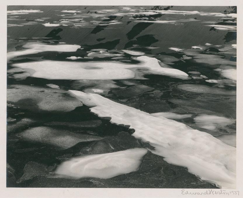 Die Aufnahme Iceberg Lake gehört zu Westons wenigen Bildern aus hochalpinem Terrain. Sie zeigt die stille Intensität eines Ortes, der nur zu Fuß erreichbar ist. Diese Arbeit ist insofern auch besonders, denn es handelt sich um einen siginierten Originalabzug von Edward Weston selbst.