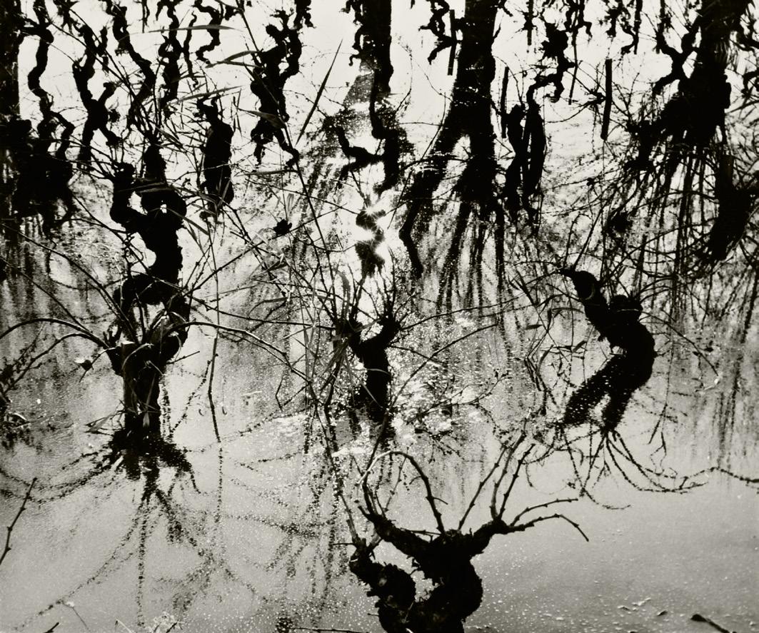 In Tide Pool nutzt Brett Weston Licht und Schatten, um die Strukturen eines Gezeitentümpels auf prägnante Weise hervorzuheben. Glänzende Partien wechseln sich mit tiefen Schwarztönen ab und erzeugen eine starke grafische Wirkung. Die natürliche Oberfläche wird durch das Spiel der Kontraste abstrahiert und wirkt fast wie eine Zeichnung.