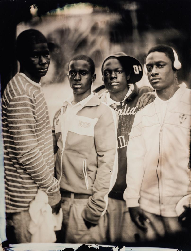 Untitled (four boys) aus der Serie young blood, 2008 C-Print (gescannt von original Ferrotypie im Kollodium-Nassplatten-Verfahren), 60 × 47 cm Sammlung SpallArt, Inv. Nr. S-1618, © Agnes Prammer