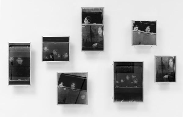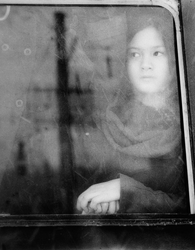Gabriele Rothemanns Hinterglasbilder wirken zerbrechlich, rätselhaft aber auch unheimlich und bedrückend, zeitlos und ohne Verortung, durch die Wahl von schwarz/weiß haftet den Fotografien historisch-dokumentarisches an. Jacques Rancière reflektiert in Der emanzipierte Zuschauer über „nachdenkliche Bilder“1, er definiert diese als Bilder, die einen nicht gedachten Gedanken in sich bergen. Gabriele Rothemann zeigt uns Jugendliche, Individuen in Übergangsidentitäten. Sie befinden sich in einem „Zwischenraum“, einer Lebensphase, die von Veränderungen geprägt ist. Blick und Pose, die Macht haben, Geschichten verdichtet zu erzählen oder neue Geschichten in Gang zu bringen. Ein Kind schaut aus dem halb herabgelassenen Zugfenster, feiner Schnee hat sich in seinem dunklen Haar verfangen. Ein anderes Kind blickt durch den unteren Teil der Scheibe, ernst, ein bisschen scheu. Der Titel Hinterglas beschreibt zugleich die Technik der Fotoarbeiten: Fotoemulsion auf Glas. Die alte Technik erzeugt über die Art des Auftrags der Emulsion einen Effekt, der die Bilder entrückt erscheinen lässt. Blicke hierhin und dorthin, ein Flechtzopf, Hände, Augen. Die Scheiben reflektieren einen weit entfernen Mast oder Schornstein, unscharf und verwischt wie im Schneetreiben, verblasst wie in der Erinnerung. Die Szenerie sieht vertraut aus. Bahnhof-Abschieds-Szenen? Kino? Heimweh? Wie viele Dokumentationen von Krieg und Vertreibung, von Verschickung und Abschiebung sind im kollektiven Bildgedächtnis gespeichert? Es wird einfacher, wenn man sich die Frage nach der Macht der Bilder stellt, nach den inszenatorischen Bildstrategien und kalkulierten Effekten.