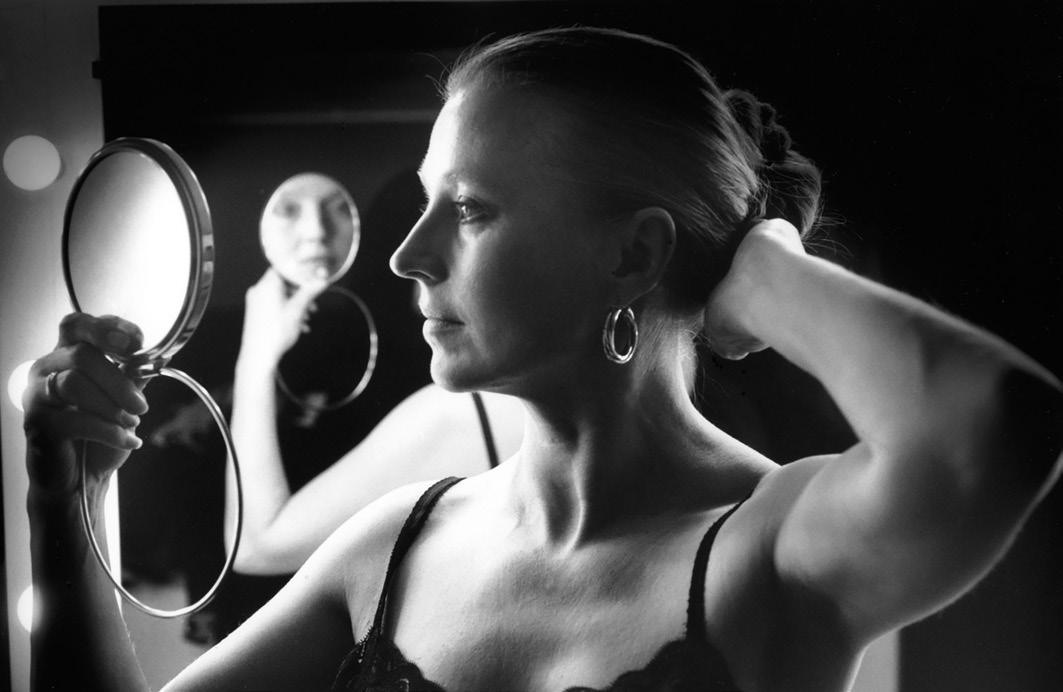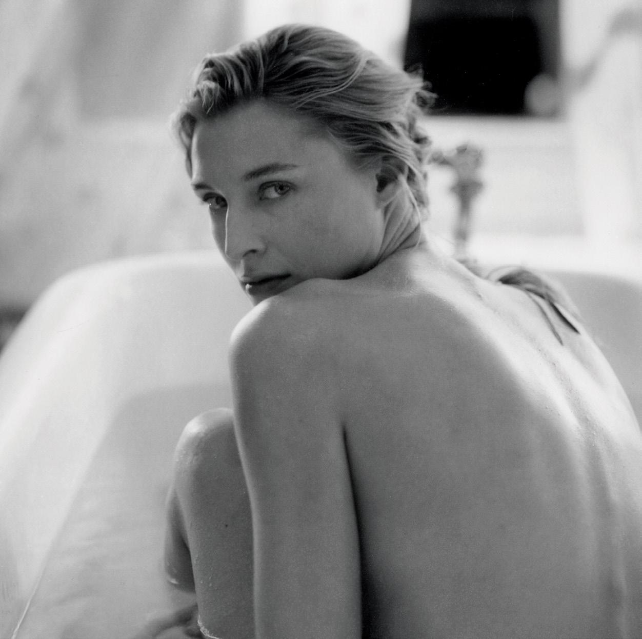 Die junge Frau hat dem Betrachter den Rücken zugekehrt und blickt uns über die Schulter direkt an. Ihr Blick fesselt uns, ebenso wie die schöne Rückenlinie, die sich in der Badewanne verliert. Fest und selbstbewusst ist der Blick, die Haltung aber drückt Verletzlichkeit aus. Die Fotografin Sheila Rock hat diesen intimen Moment in Nahaufnahme festgehalten. Ist es der „weibliche Blick“, dem wir diese Aufnahme verdanken, hätte ein Fotograf diese Synthese von Selbstbewusstsein und Verletzlichkeit erkannt und festgehalten?