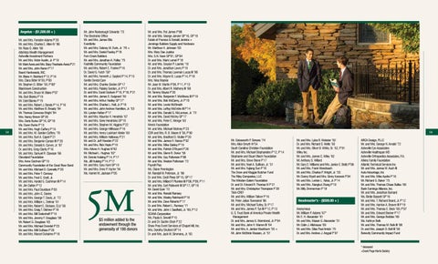 Mr. and Mrs. Forester Adams P’20 Mr. and Mrs. Charles E. Allen IV ’86 Mr. Ross O. Allen ’66 AltaVista Wealth Management Asheville Investment Partners Mr. and Mrs. Victor Austin, Jr. P’19 Mr. Mark Avera and Mrs. Stacy Theoharis-Avera P’21 Mr. and Mrs. John Baron P’17 Beard Hardwoods, INC. Mr. Blake H. Bickford P’12, P’16 Mrs. Clara Bitter W’59, P’00 Mr. Stephen D. Bitter ’59, P’00* Blackhawk Construction Mr. and Mrs. Bruce W. Blake P’07 Ms. Bari Blanks P’19 Mr. Edel Blanks P’19 Mr. and Mrs. Robert J. Bonds P’14, P’16 Mr. and Mrs. Matthew B. Bready ’84 Mr. Thomas Converse Bright ’84 Mrs. Nancy Brown GP’20 Mrs. Doris Burke GP’16, GP’18 Ms. Dawn Burks P’13 Mr. and Mrs. Hugh Caffery P’19 Mr. and Mrs. M. Gordon Caffery ’76 Mr. and Mrs. Burt A. Capel P’21 Mr. and Mrs. Benjamin Carson III P’20 Mr. and Mrs. Donald A. Carver, Jr. ’87 Dr. and Mrs. Greg Clarity P’16 Mr. and Mrs. Samuel R. Clawson ’66 Cleveland Foundation Mrs. Anne Cochran GP’19 Community Foundation of the Great River Bend Mr. and Mrs. Michael D. Connolly P’20 Mr. and Mrs. Peter F. Conway Mr. and Mrs. Fred C. Craft, Jr. Mr. and Mrs. Harold G. Cushman III P’14 Mr. Jim Dalton P’12 Mr. and Mrs. Paul Davidson P’03 Mr. and Mrs. John G. Davies Mr. and Mrs. George T. Davis, Jr. ’72 Mr. and Mrs. William L. Delmar ’61 Mr. and Mrs. Robert E. Dickson, CLU ’58 Mr. and Mrs. Craig T. Dishner P’18 Mr. and Mrs. Bill Dodenhoff P’19 Mr. and Mrs. Jeremy F. Douglass ’58 Mr. Robert G. Douglass ’63 Mr. and Mrs. Michael Drendel P’23 Mr. and Mrs. Will DuBose P’20 Mr. and Mrs. Marcel Duhaime P’18