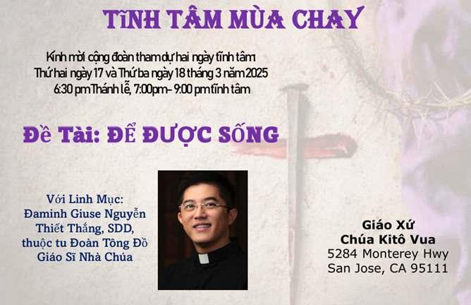 Xin gọi văn phòng giáo xứ 408-362-9958 hoặc anh Lương 408-876-7877, hoặc chị Hà 408-571-9937.