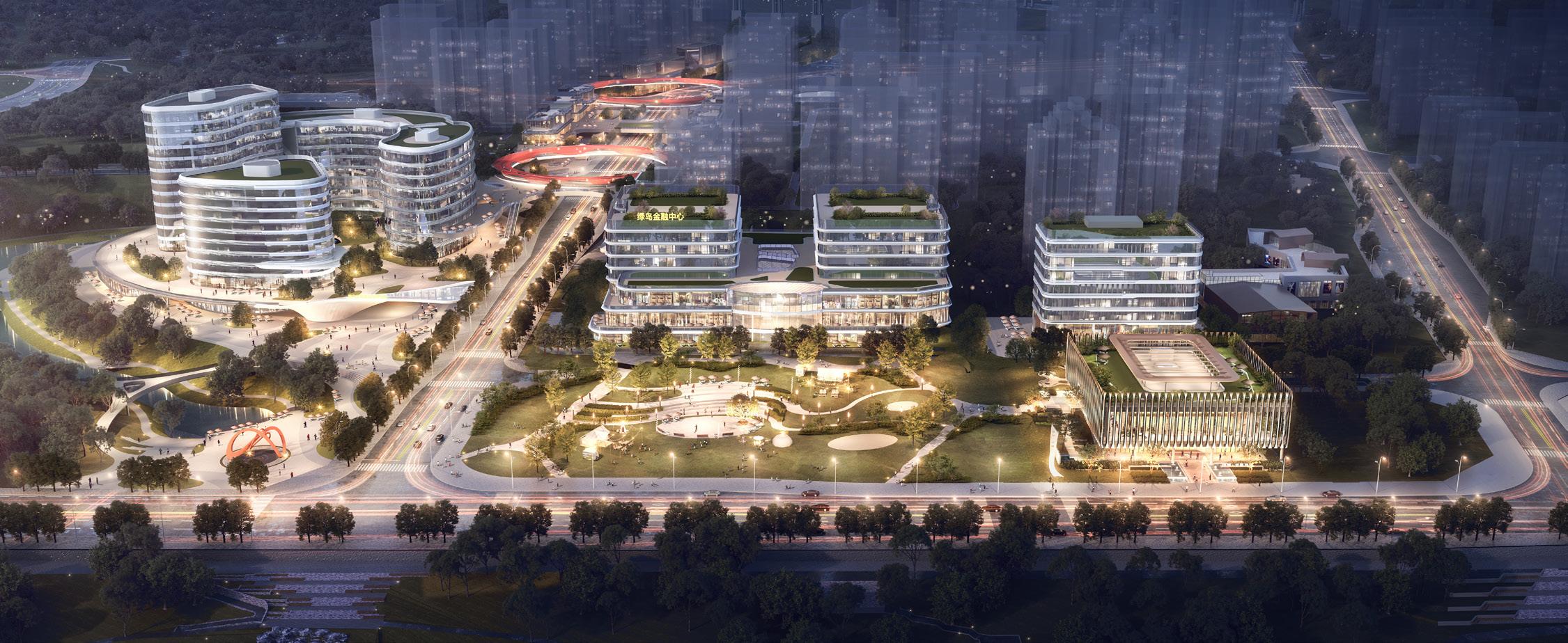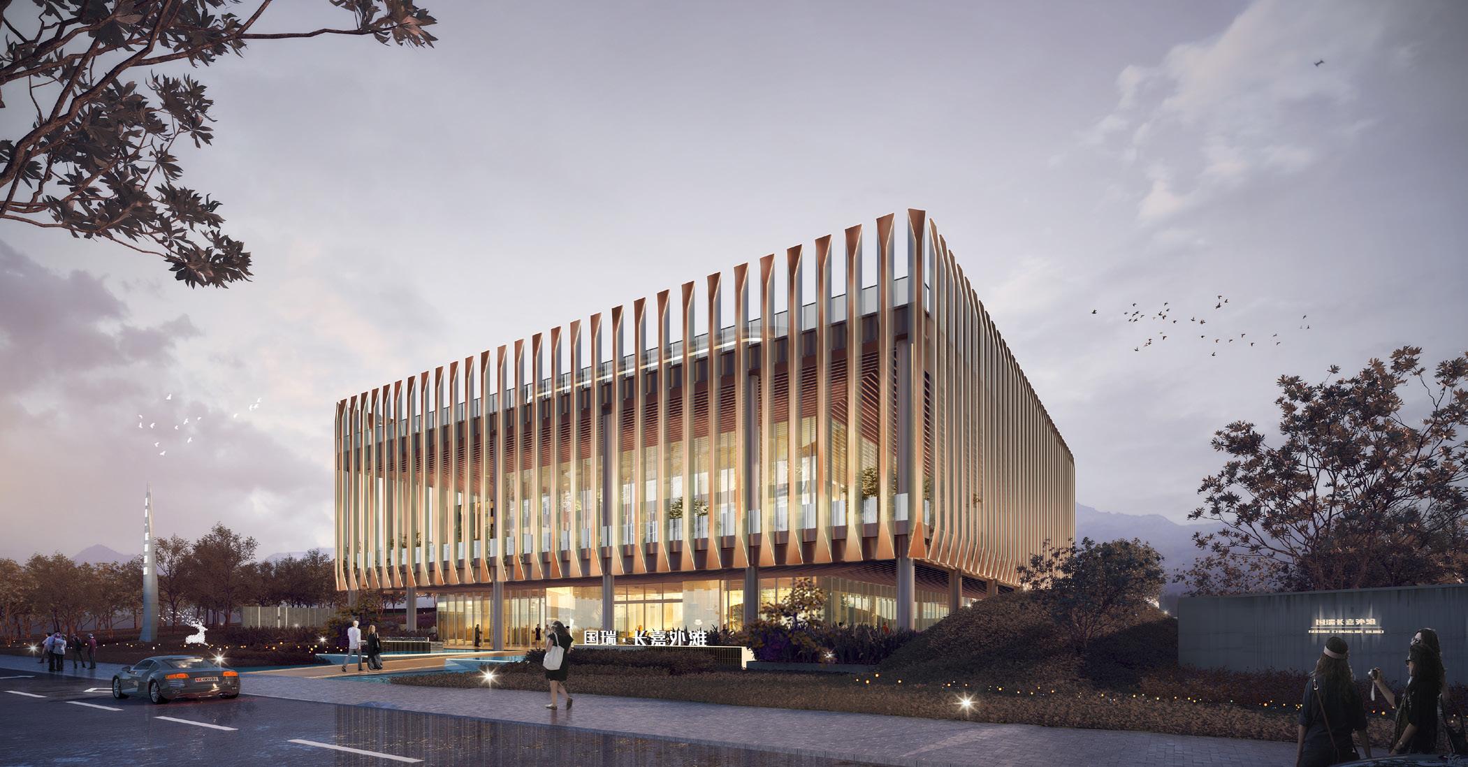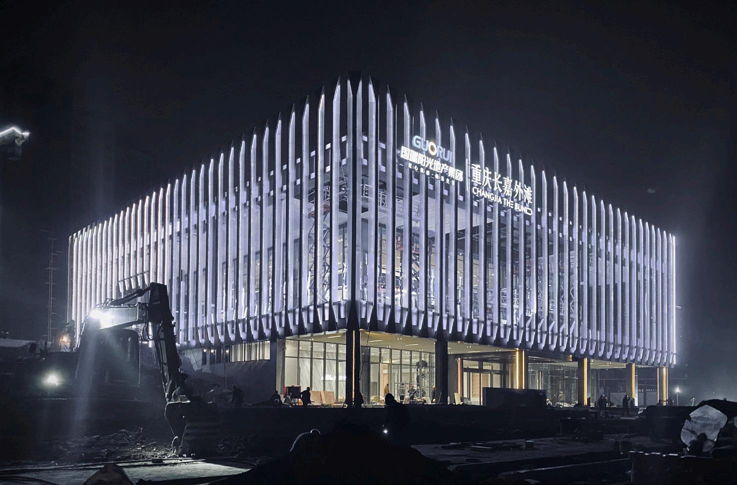 In an up incoming neighborhood along the Yangtze River, this new office building hosts the offices for a large real estate company in Chongqing. As part of an overall master plan to revitalize this area just outside of the city center, this design is a continuity of the iconic, illuminating cityscape; casting it’s reflections on the water below, and it’s mark within the famous city’s silhouette.