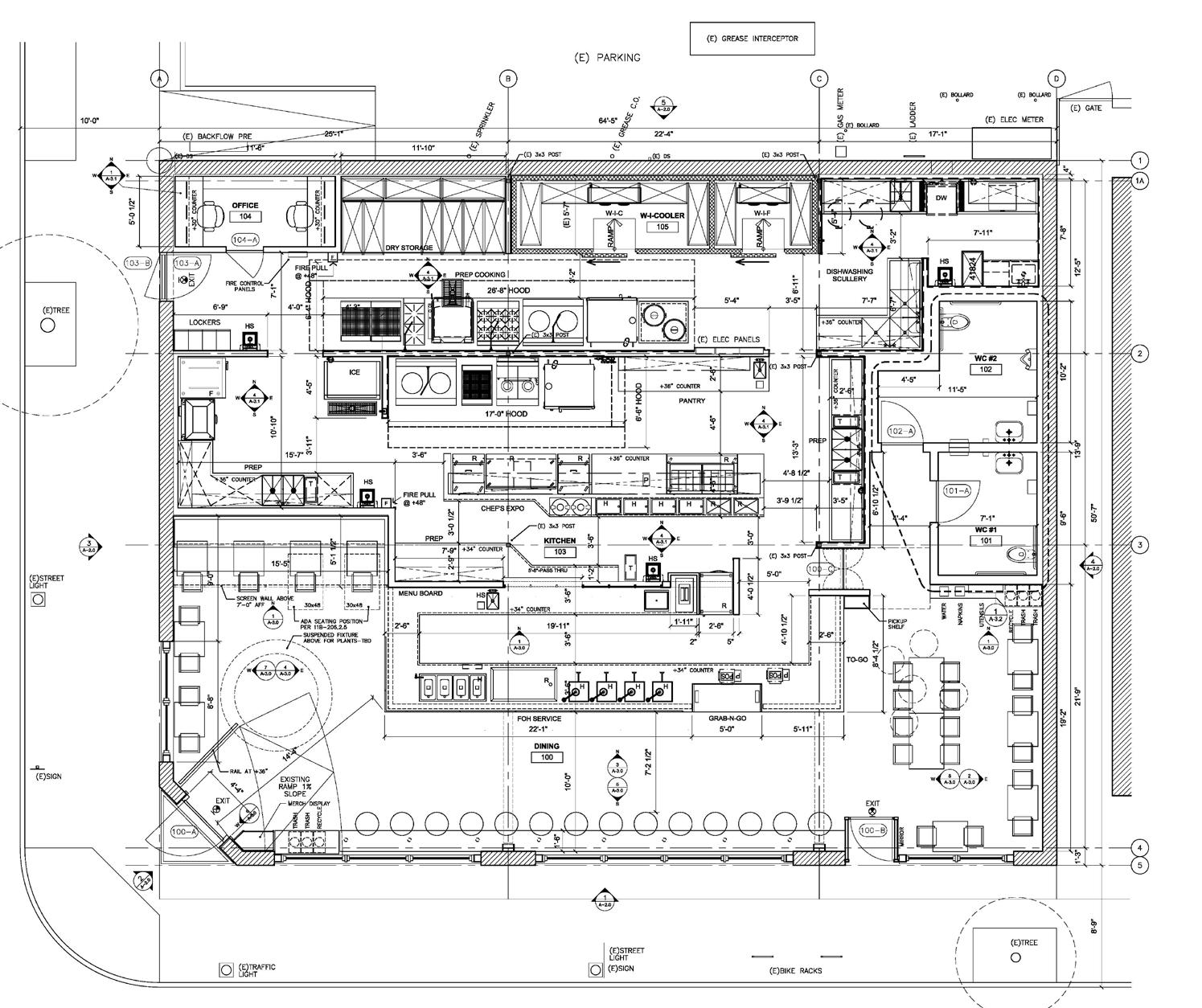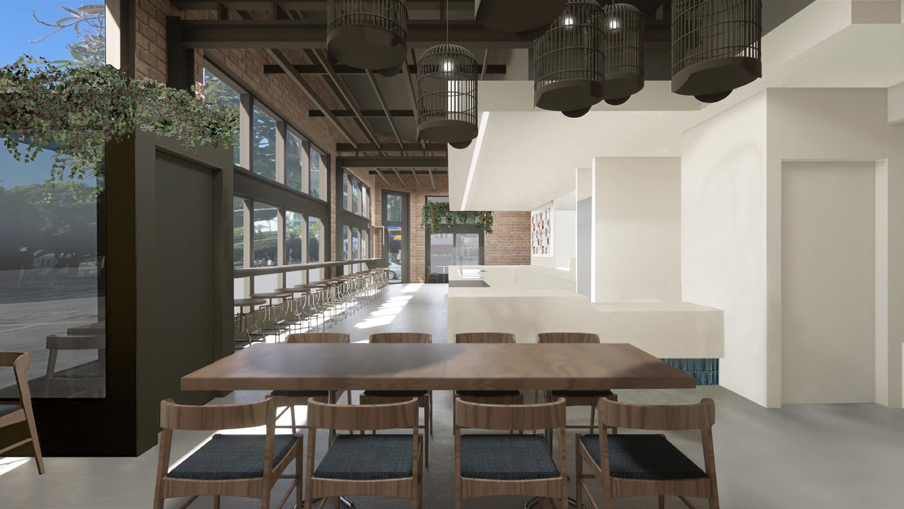 In an old, weathered brick building in need of an exterior face lift and gutting of the interior, this Santa Monica Restaurant features a state-ofthe-art kitchen and picture worthy dining experience. The team explored our collective travels and dining experiences in Asia, and took inspiration from elements of whimsy and nature to pair with the Asian Fusion menu. Through creating the CD set, I became familiar with restaurant and kitchen specific building codes and working with food service consultants. I studied the specifications of the commercial kitchen equipment to ensure the drawings were up to code and spacially laid out to best optimize the flow of the prep and cook lines. Throughout the DD phase, I created conceptual renderings to assist the clients in visualizing the design concept.