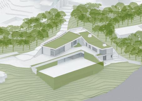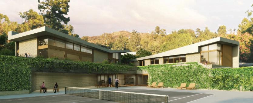 The Festlig House is the third structure on the Owner’s estate, expanding the recreation and entertainment program of the collective properties. The incentive for the project stemmed from the client’s desire to accommodate large gatherings and to provide a setting for tennis matches, basketball games, and conjunctive social activities. The project size and split-massing was studied to minimize impact to the environment, to calibrate an appropriate scale, and to expeditiously fulfill programmatic needs. A portion of the estate was donated to maintain a wildlife corridor. Green building and site considerations were integrated with high-performance energy conserving building assemblies and water management design. Striving for an authentic sense of place, the design acknowledges the lay of the land and employs existing vegetation, landscape precedence, color, and material palette to integrate the project with the existing estate and the larger canyon environment beyond.
