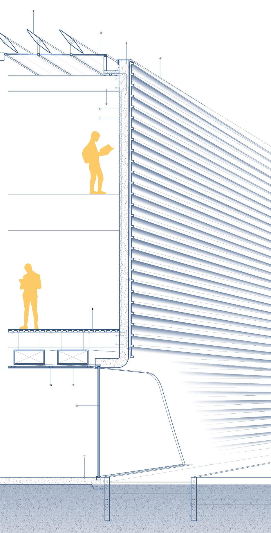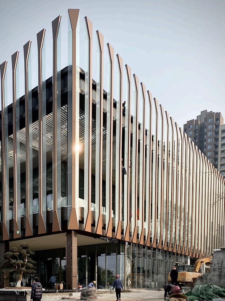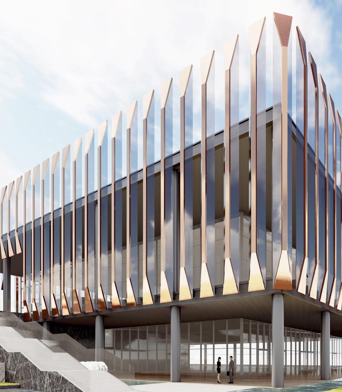 The facade design figuratively and literally mirrors the water in the river, in the way sunlight is captured in the ripples of the water during the day and how the skyline casts its lights down at night. The carefully selected materials aid in enhancing the luminosity of the night’s sky and freezing the most perfect moment above the Yangtze River.