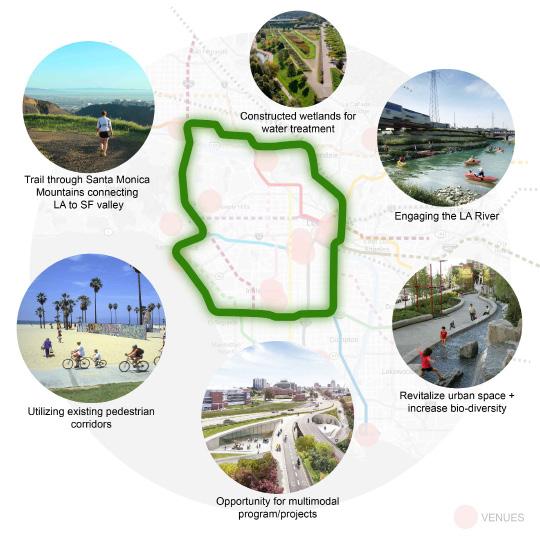 Weaved into the loop is program that celebrates the unique neighborhoods and communities it runs through, allowing the locals to participate and contribute to the Olympics’ events. This greenway creates a sustainable way for the Olympic visitors to experience Los Angeles, and for the residents to enjoy once the games have passed.