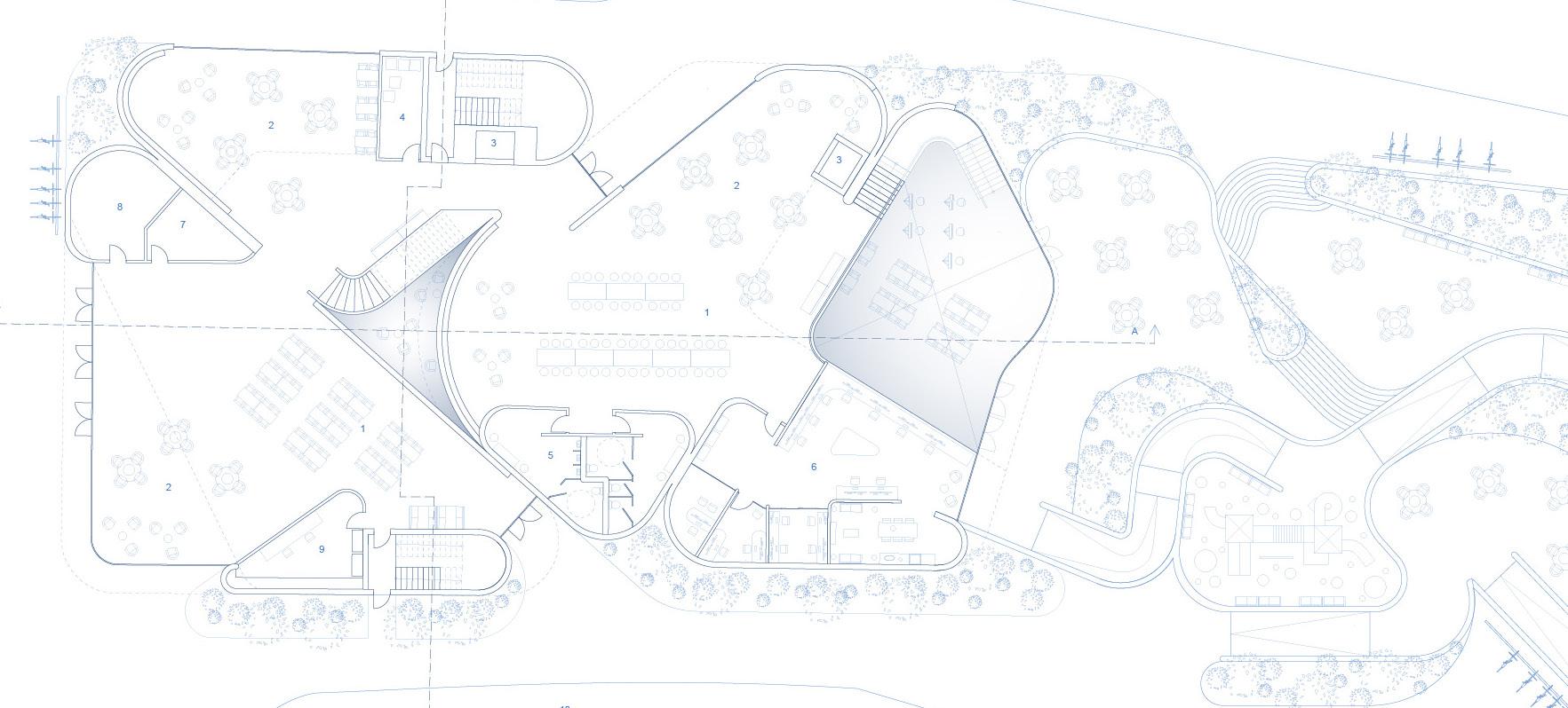 Playing upon the idea of Old Hollywood Noir, the design proposal emphasizes the duality of LA as both sunlight and sultry. The light wells inject the environmental aspects, bringing in the Southern California climate as sunspot projections into the enclosed space. I examined light patterns from the openings above which would provide a foundation for the overall design. The pattern would be translated into every aspect of the design from the landscape, vertical and horizontal planes, wayfinding, and furniture. I also studied the colors and textures for the color palette which is inspired by the flora and fauna that is prevalent to Southern California. During design development, I utilized my skillsets in Grasshopper3D to create a script that analyzes walking distance and time from specific locations. This script helped in developing the programmatic layout of the overall buiding