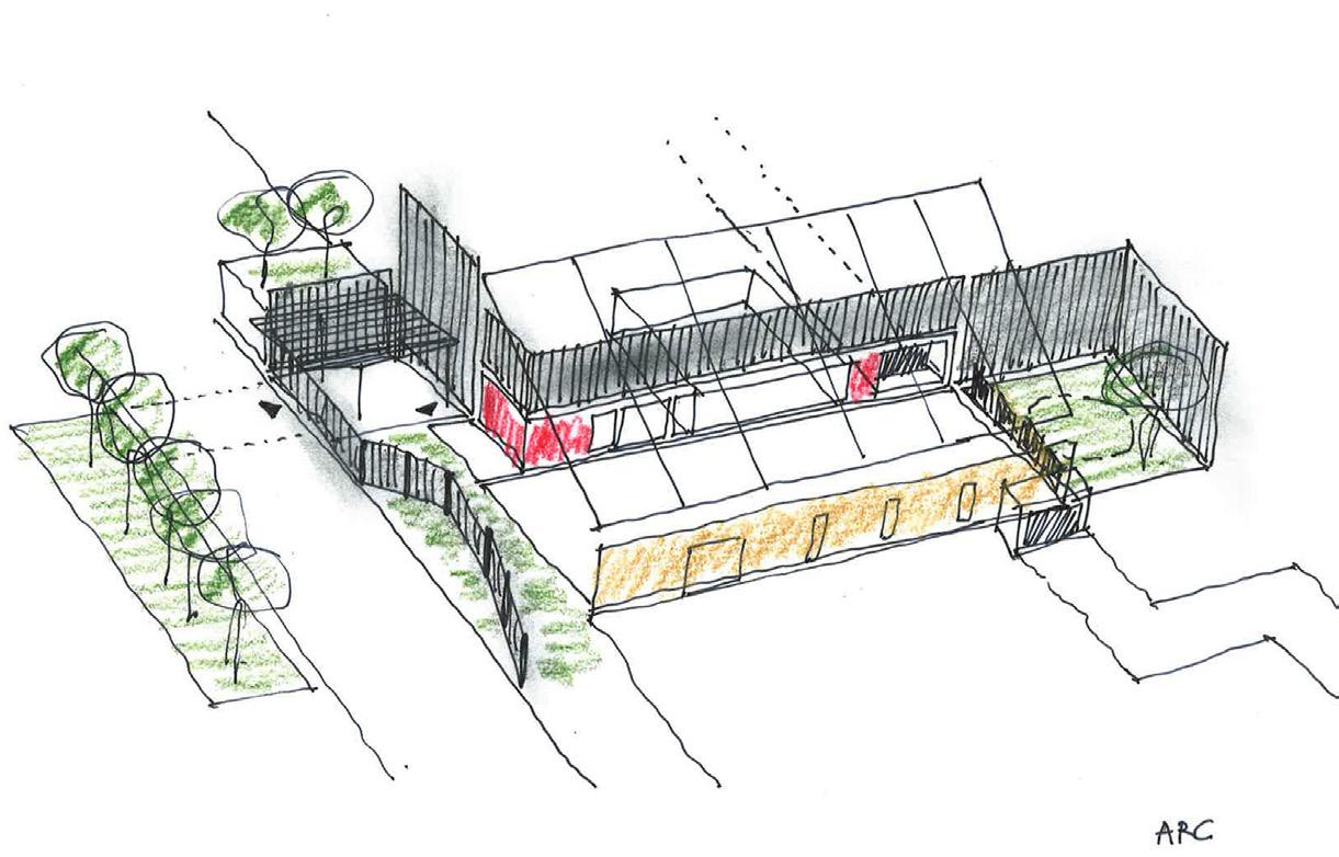 The existing building components were salvaged, reused, and reprogrammed to integrate with the design of the Resource Center. I created a series of diagrams to assist in the spacial planning of the program and translate the ideas from hand sketches.