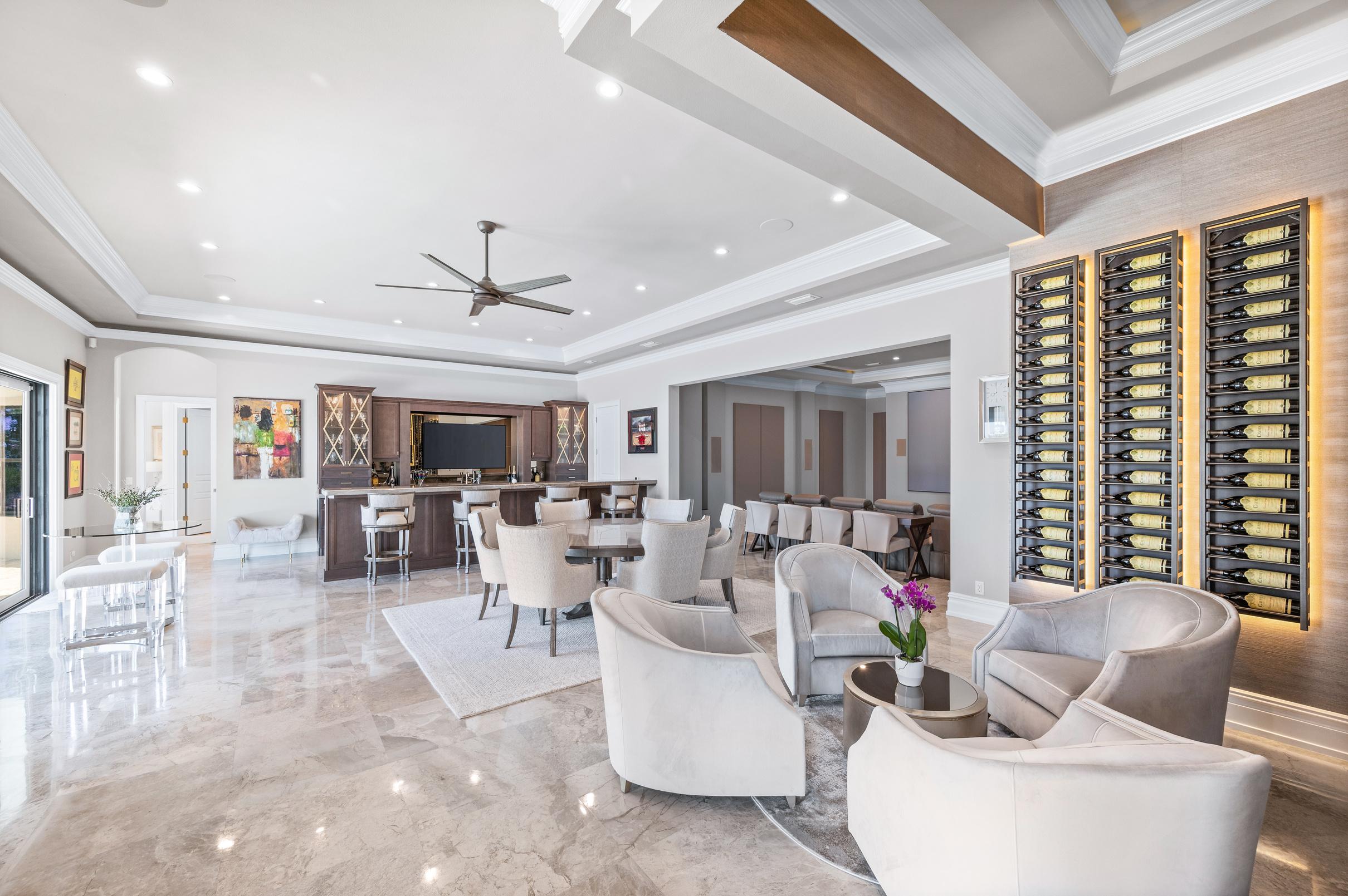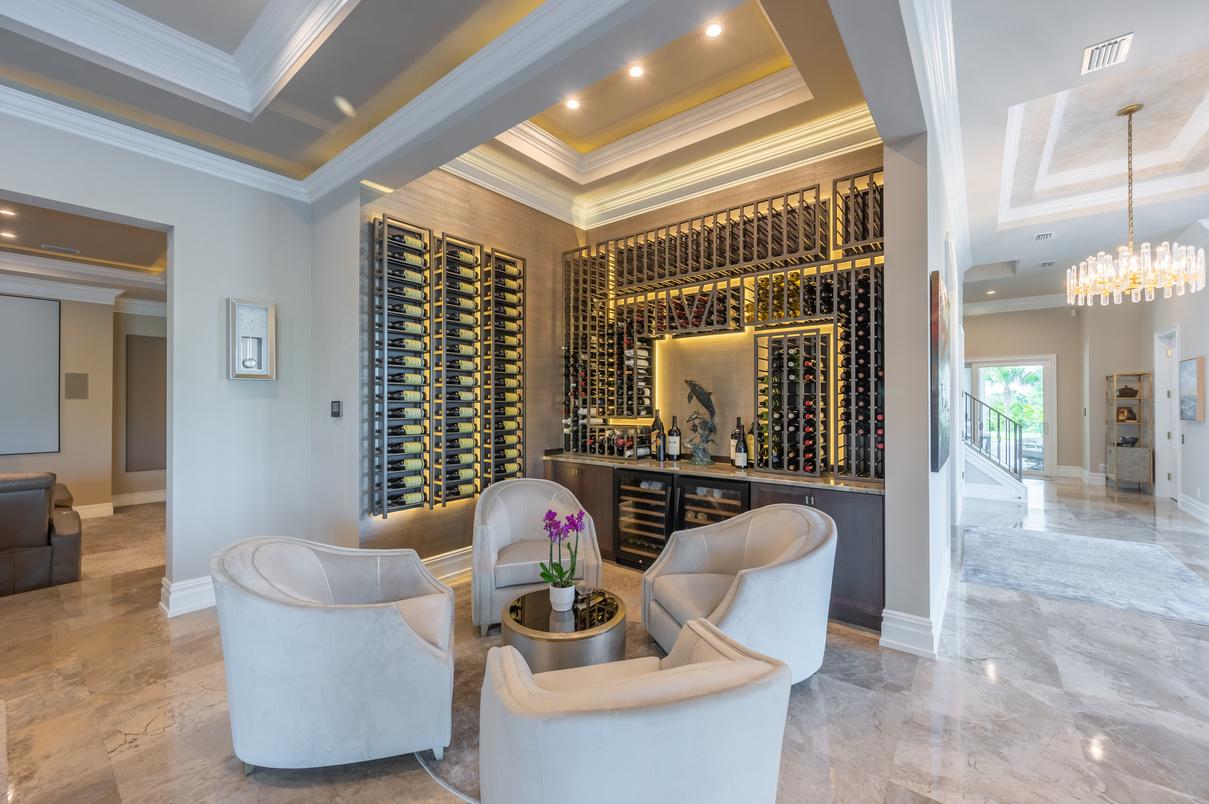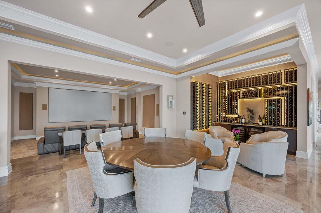 Immerse yourself in the realm of luxury and enjoyment with the home's superb indoor entertainment offerings. The expansive theater room, featuring a magnificent 200-inch screen, comfortably seats 15 guests for an unparalleled cinematic experience. Adjacent, a fully equipped bar combines elegance and functionality, perfect for hosting unforgettable gatherings. Wine enthusiasts will delight in the 750-bottle wine nook nearby. With seamless access to the pool area promising refreshing dips and leisurely afternoons, this space ensures a harmonious blend of indoor comfort and outdoor relaxation.