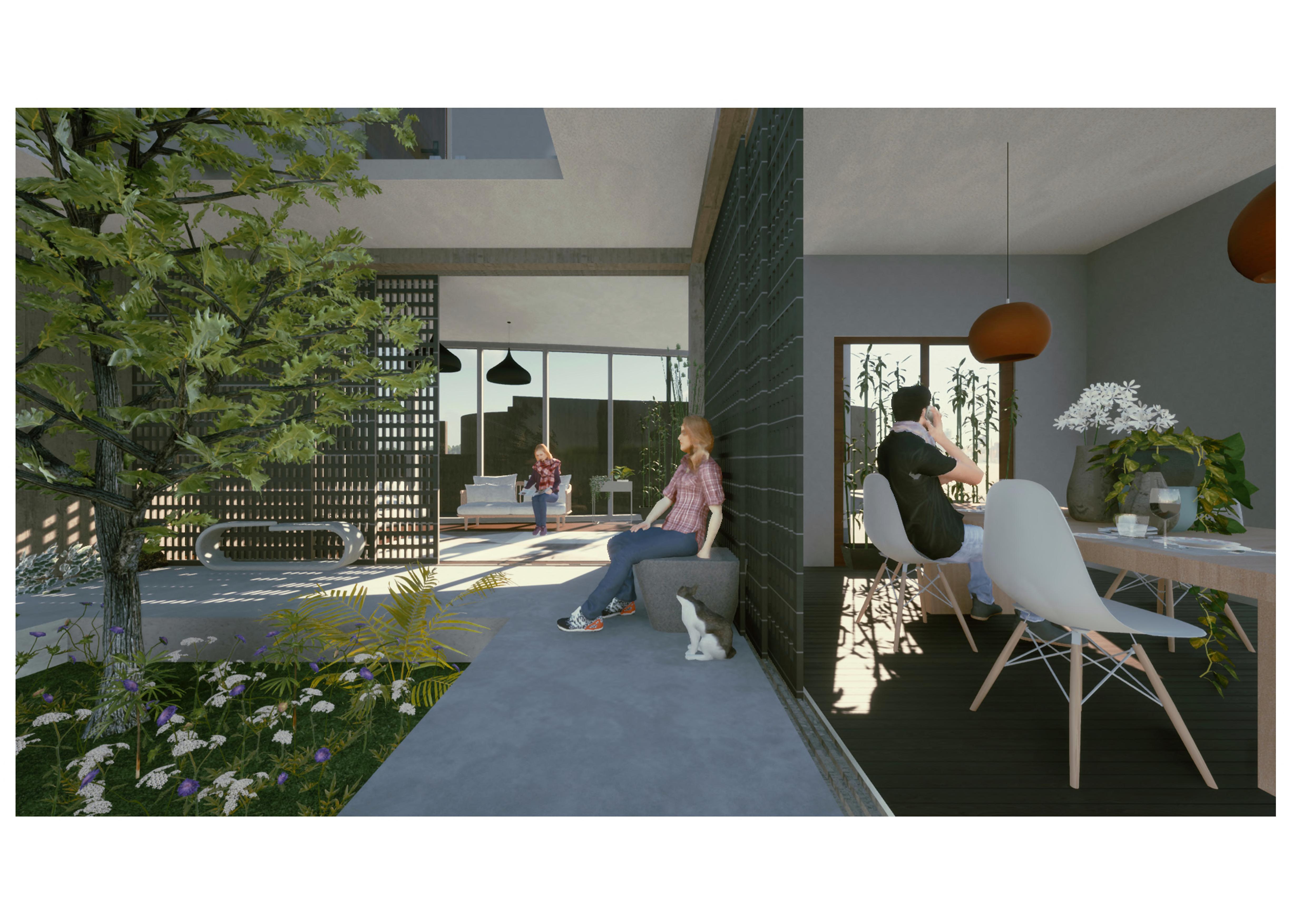 R.C.C STAIRCASE GATHERING SPACE SEMI OPEN TERRACE PLAY AREA LIVING AREA