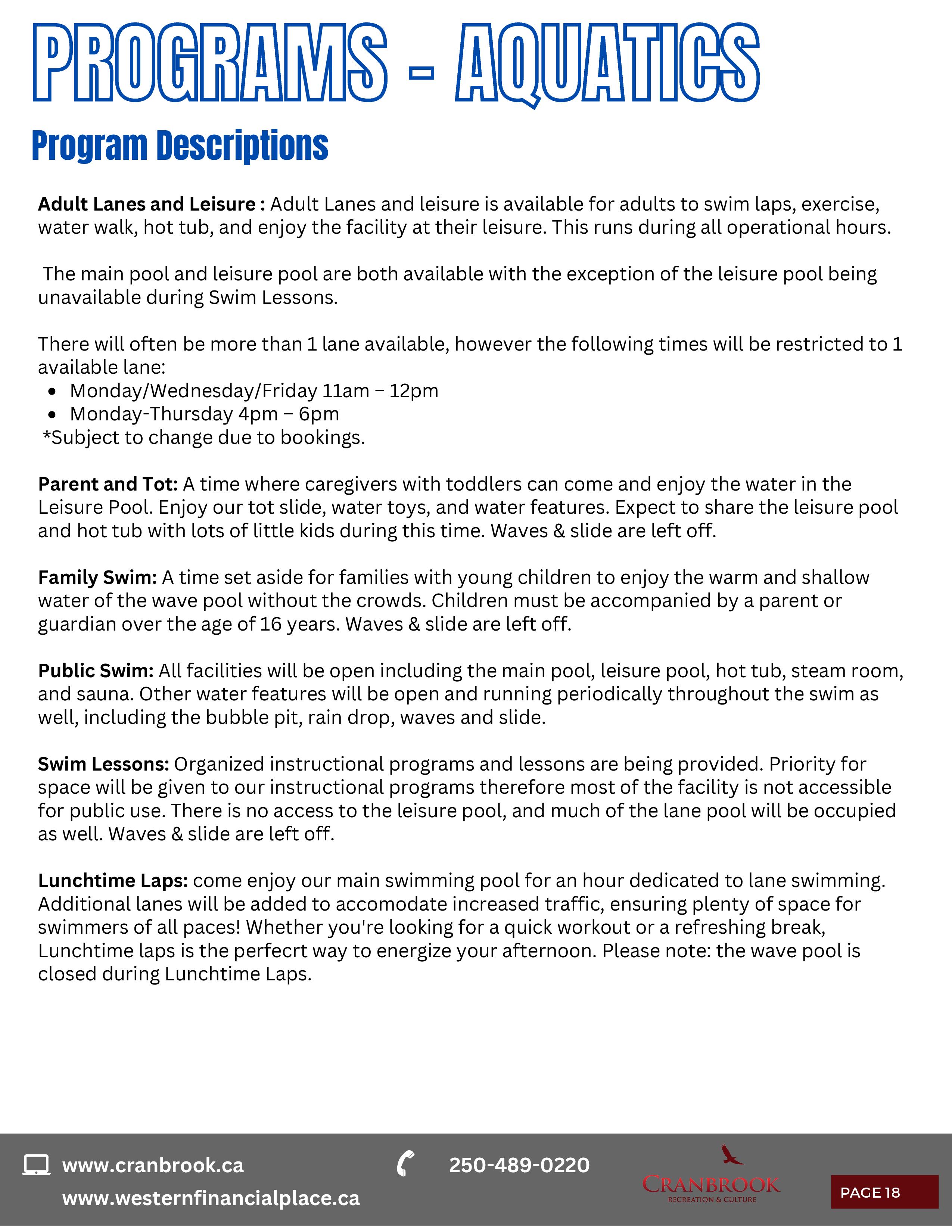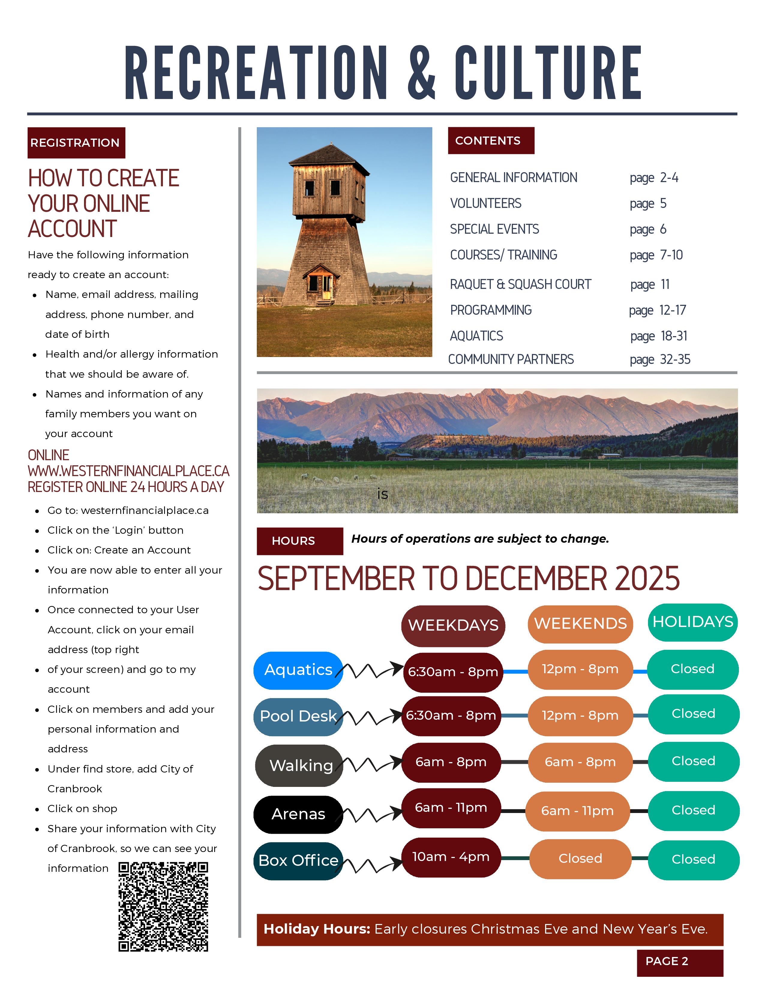 Lost or stolen items are not the responsibility of the City of Cranbrook's Recreation and Culture Department. Clients are encouraged to leave valuable items at home, or locked away if lockers are available for use.