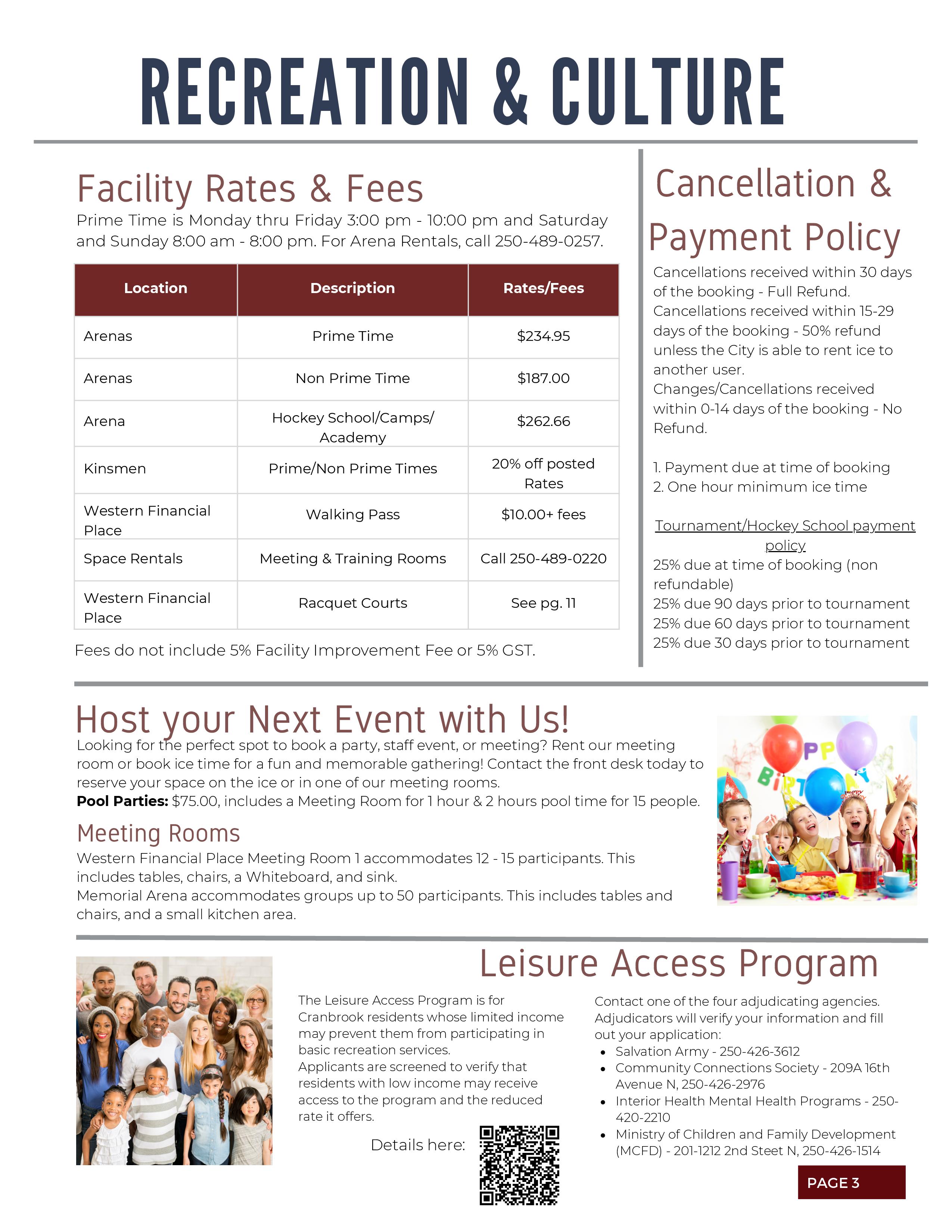 The Leisure Access Program is for Cranbrook residents whose limited income may prevent them from participating in basic recreation services. Applicants are screened to verify that residents with low income may receive access to the program and the reduced rate it offers.