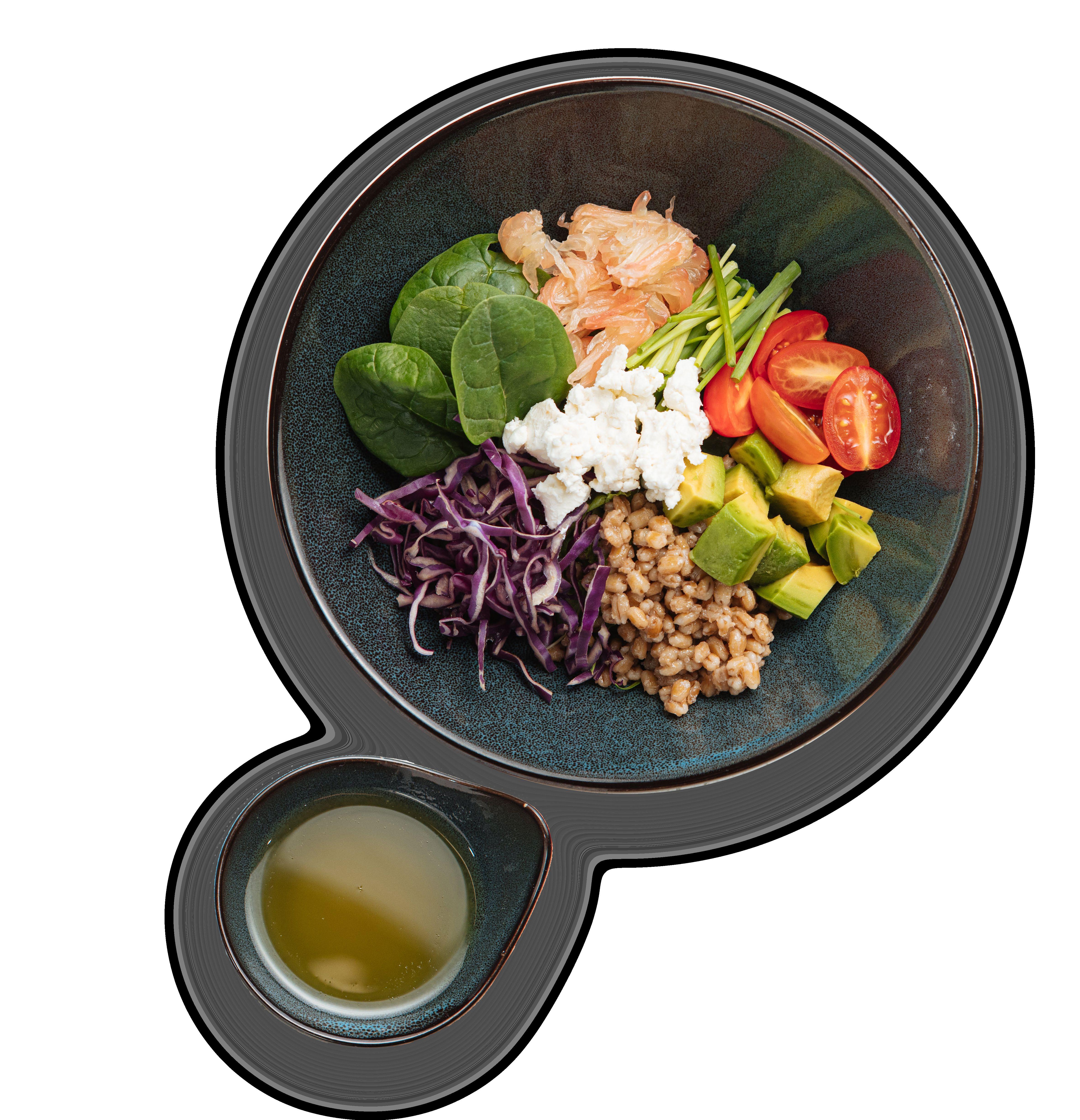 Vegan or Goats cheese, mushroom, baby spinach, pomelo, red cabbage, avocado with honey citrus vinaigrette