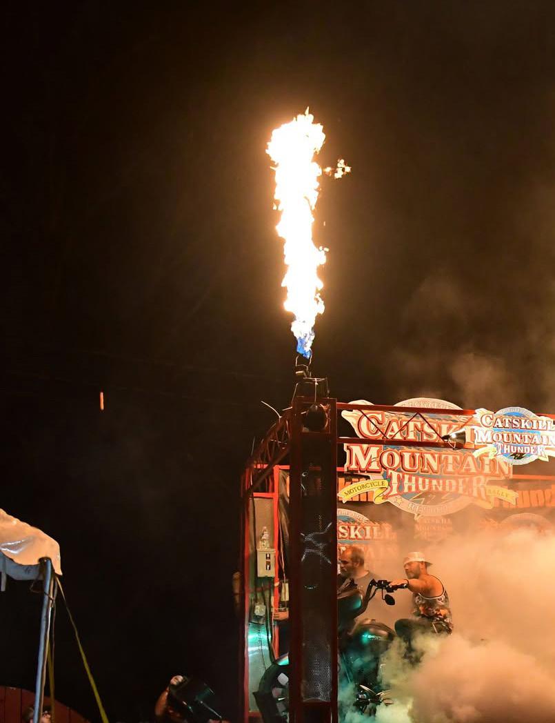 Catskill Mountain Thunder Motorcycle Festival always has more going on than most people can do, Wall of Death, Aerial Burnouts, MX Stunts, Wall of Death, Bike Build Off, Bike Show, Bike Artists, Bike Run, Fireworks, Bike Games, Vendors Field, Bars & more Bars!